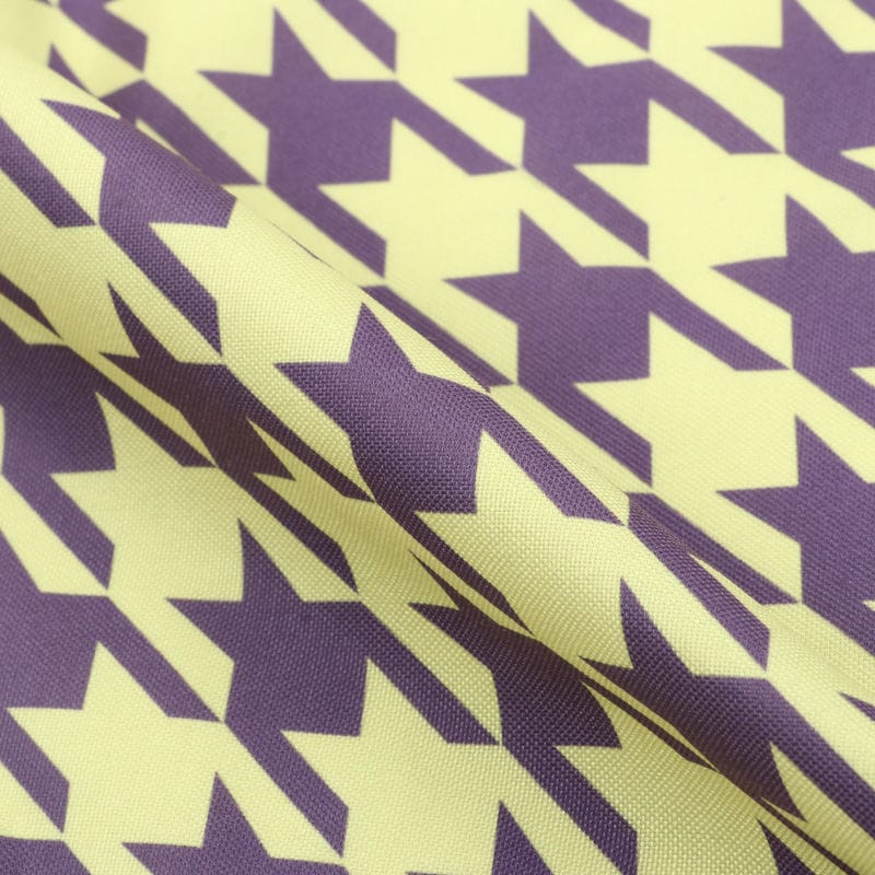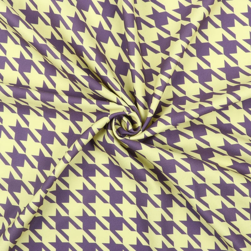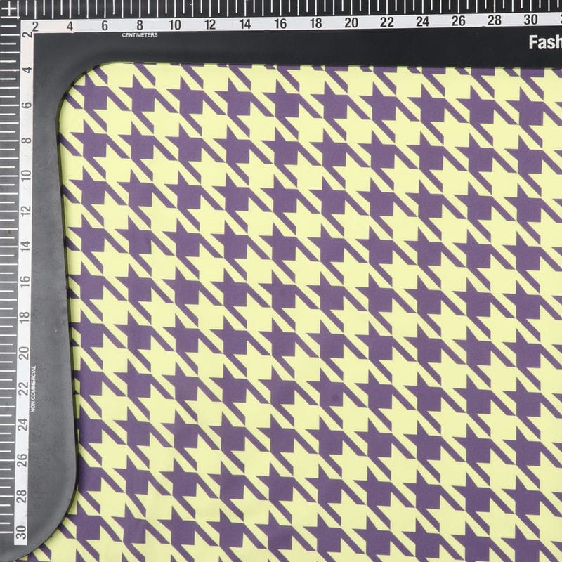 Light Yellow And Eggplant Houndstooth Pattern Digital Print Rayon Fabric