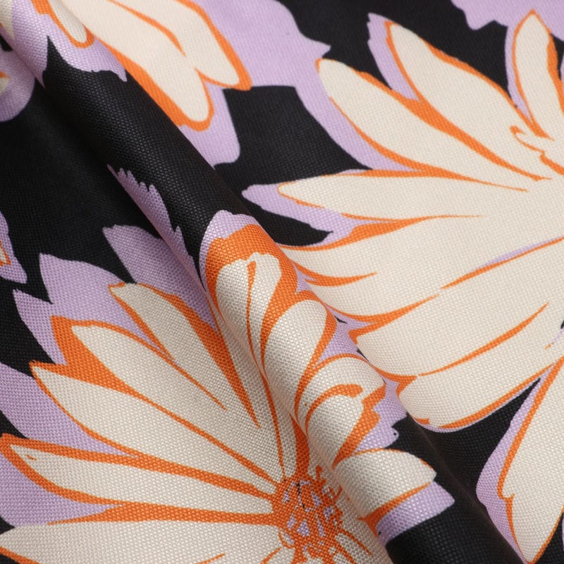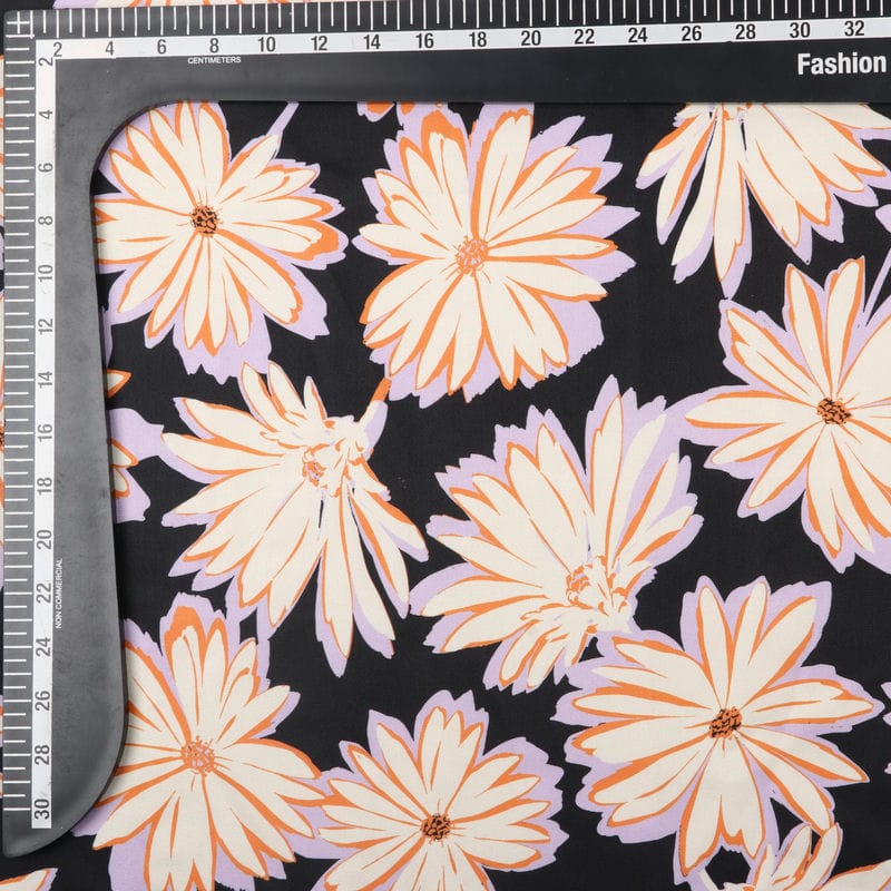 Orange And Black Floral Pattern Digital Print Rayon Fabric