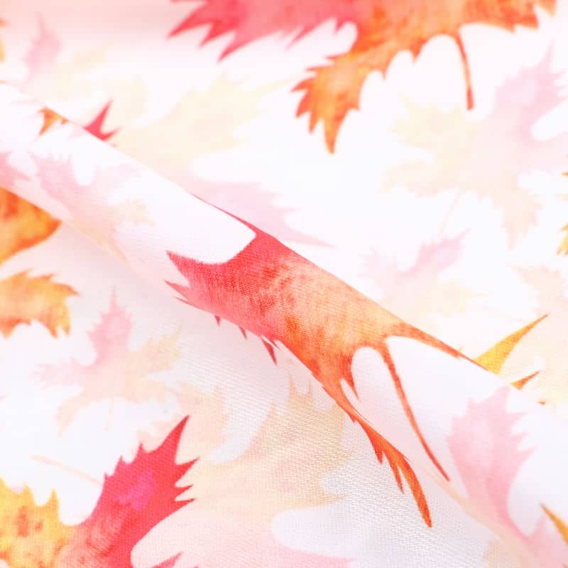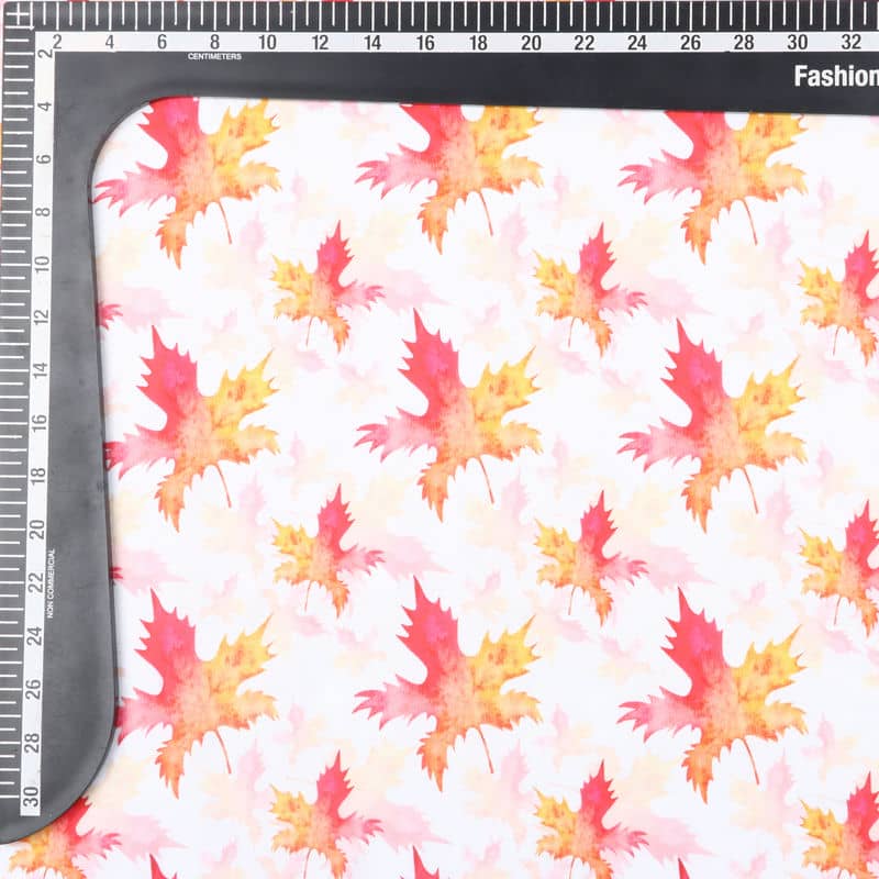 Pink And Yellow Leaf Pattern Digital Print Rayon Fabric