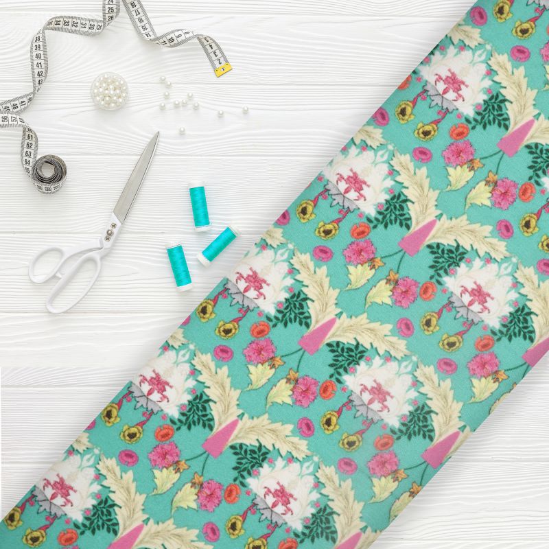 Top QualitySea Green And Ivory Floral Pattern Digital Print Rayon Fabric