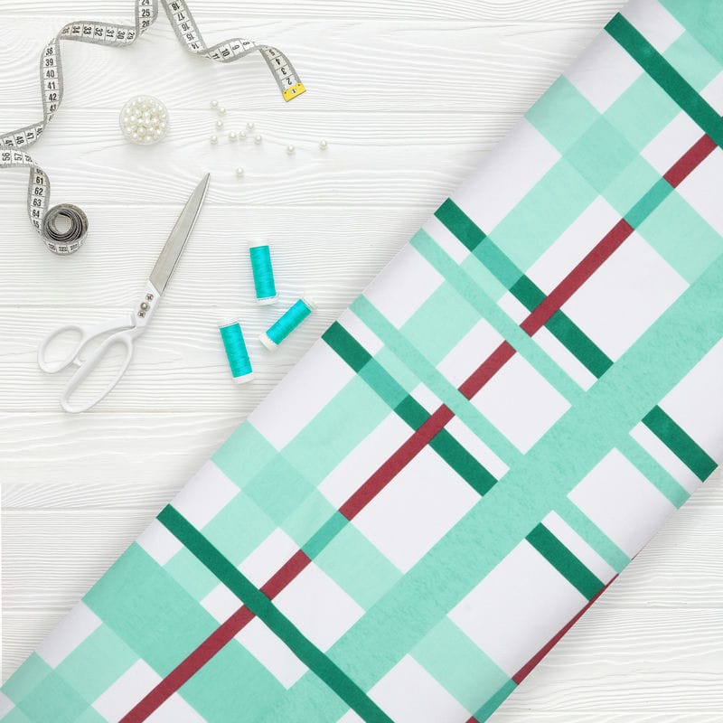 Turquoise And White Checks Pattern Digital Print Rayon Fabric