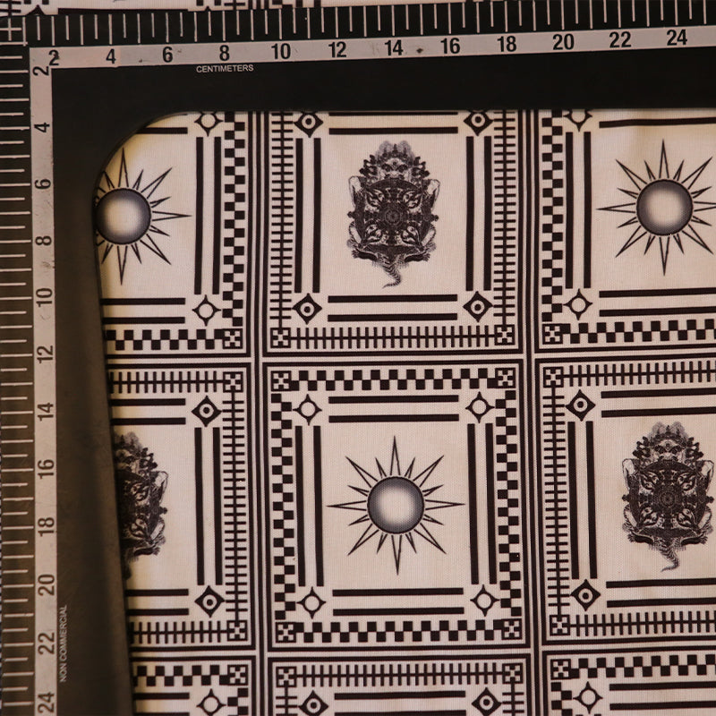 White And Black Sun Block Pattern Digital Print Rayon Fabric.
