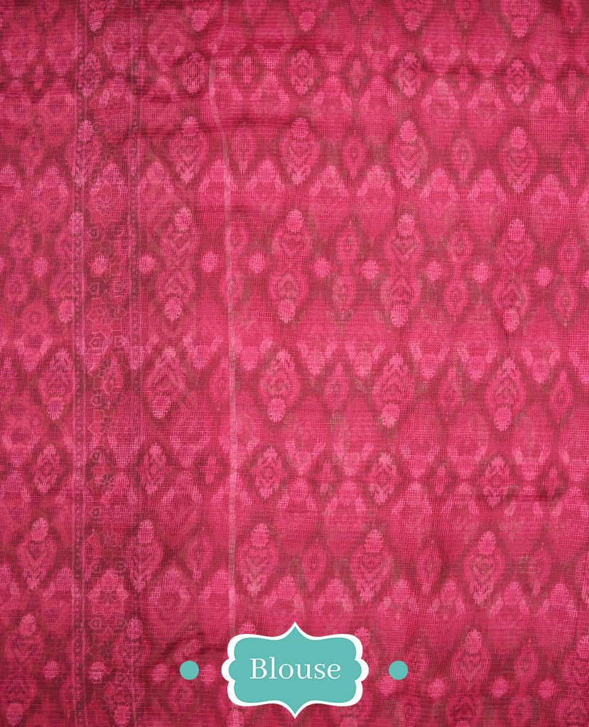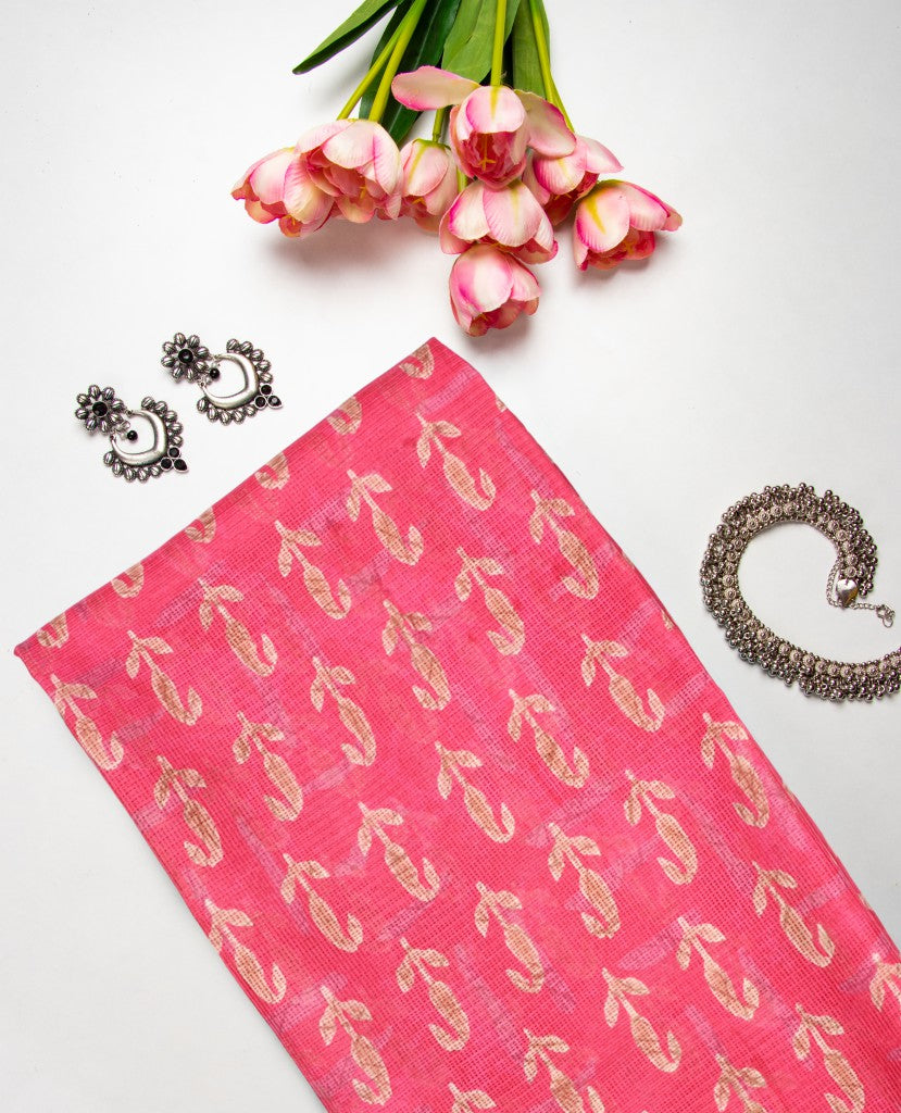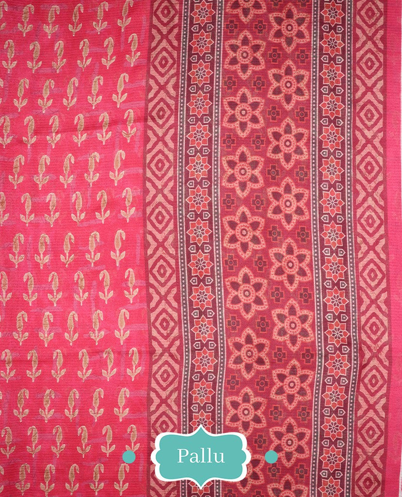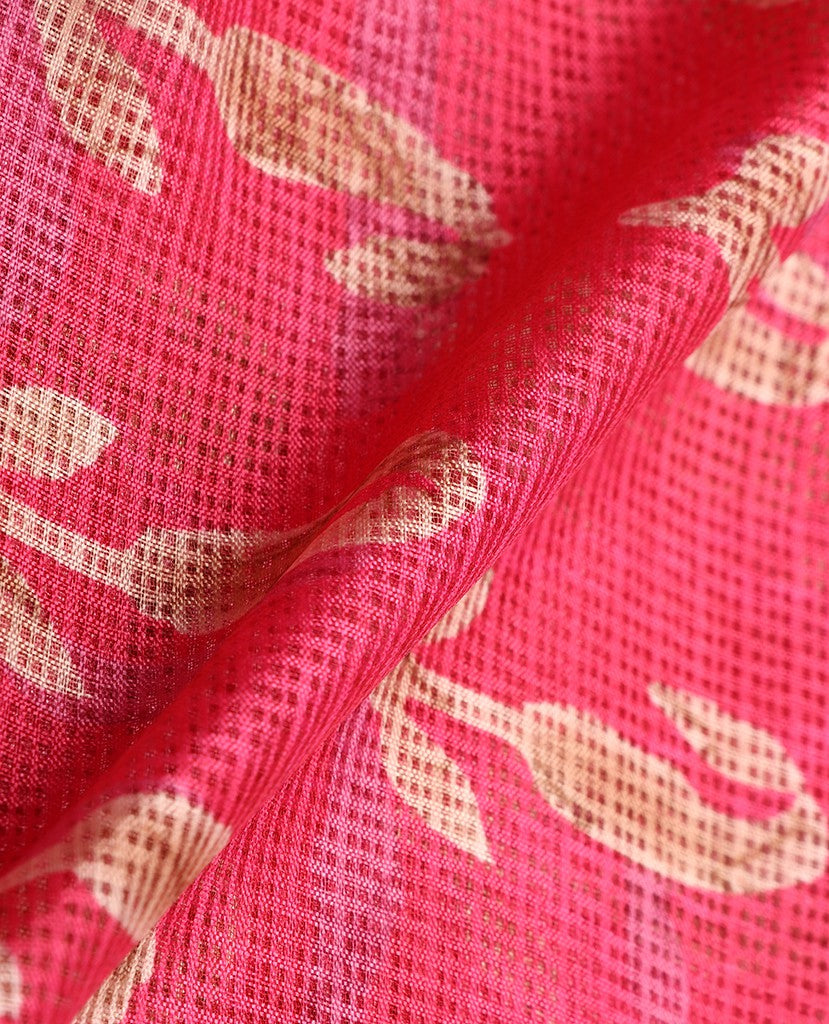 Bright Pink And Beige Paisely Pattern Digital Print Kota Doria Saree With Blouse