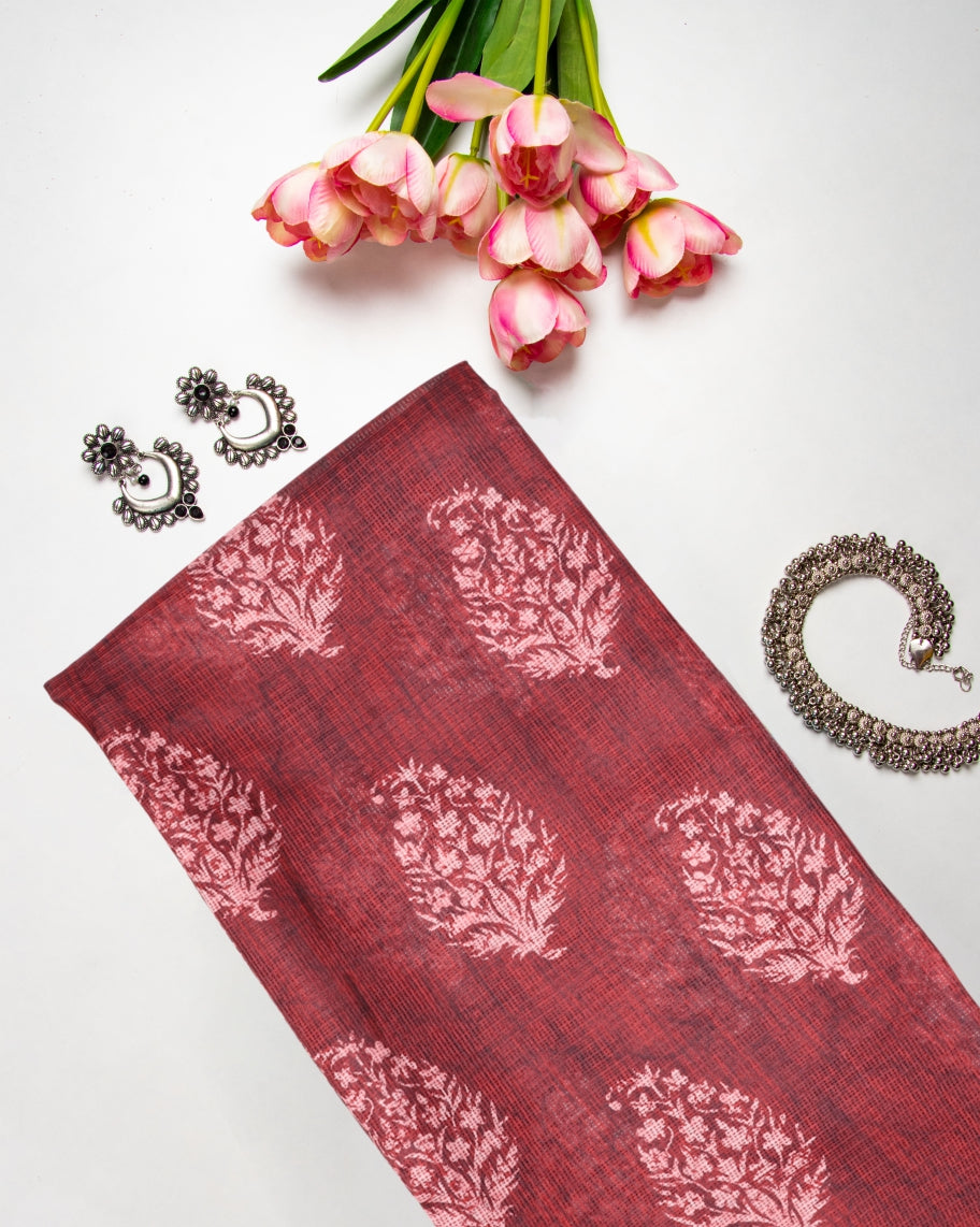 Light Brown Mughal Pattern Digital Print Kota Doria Saree With Blouse