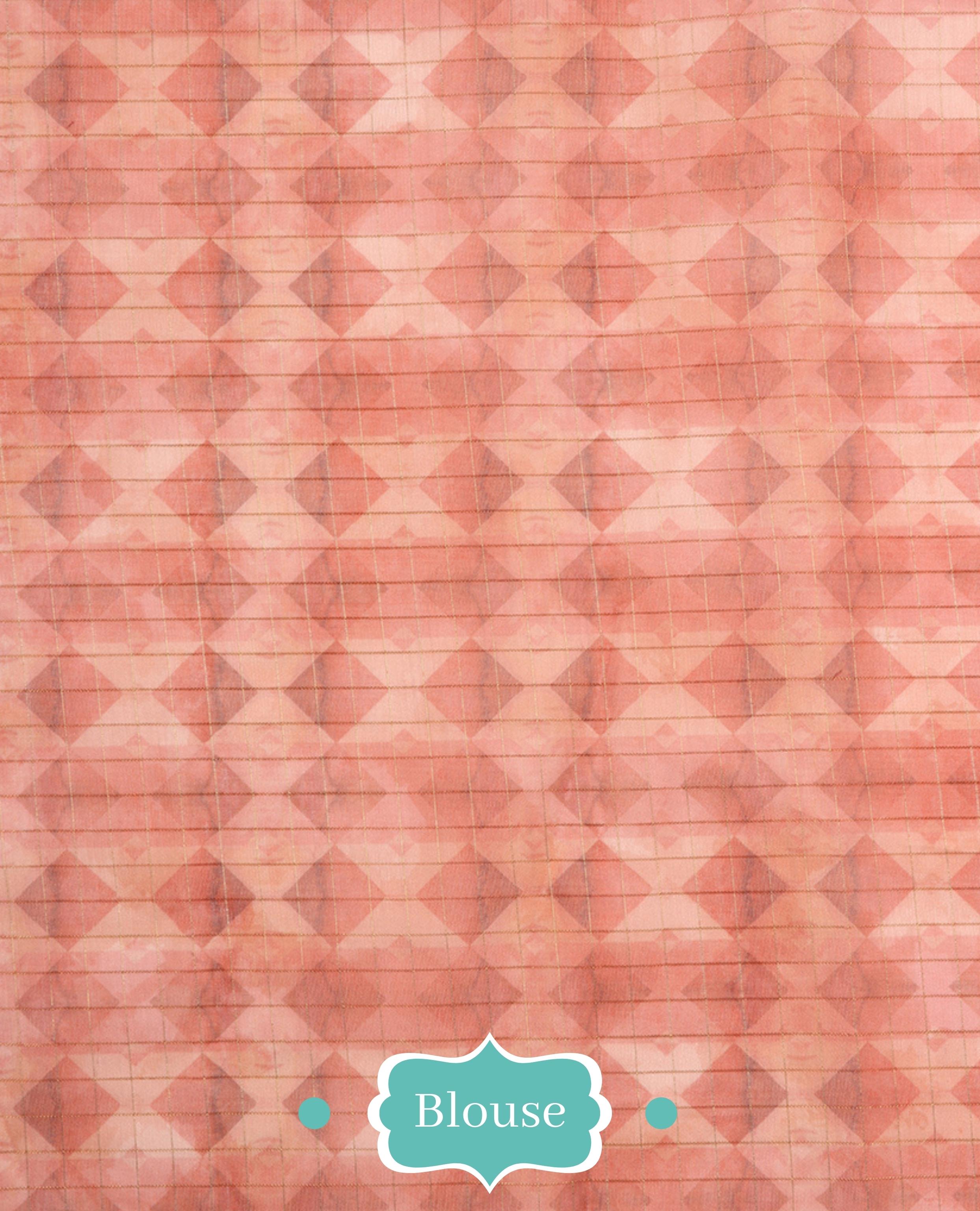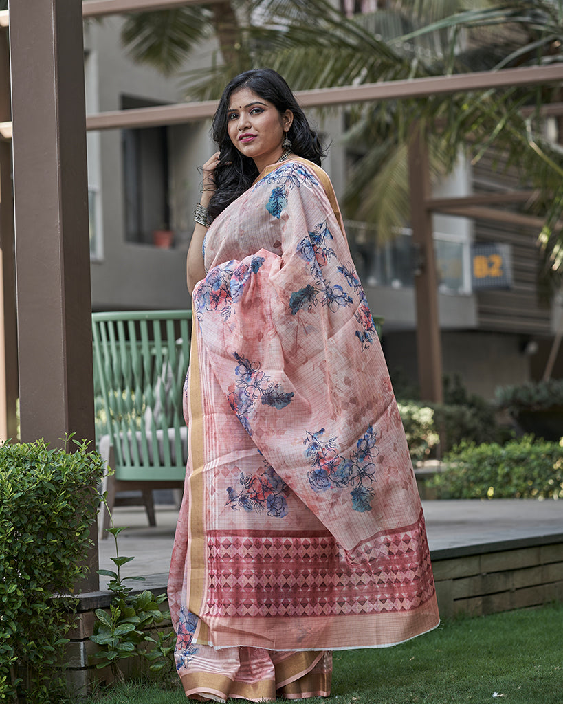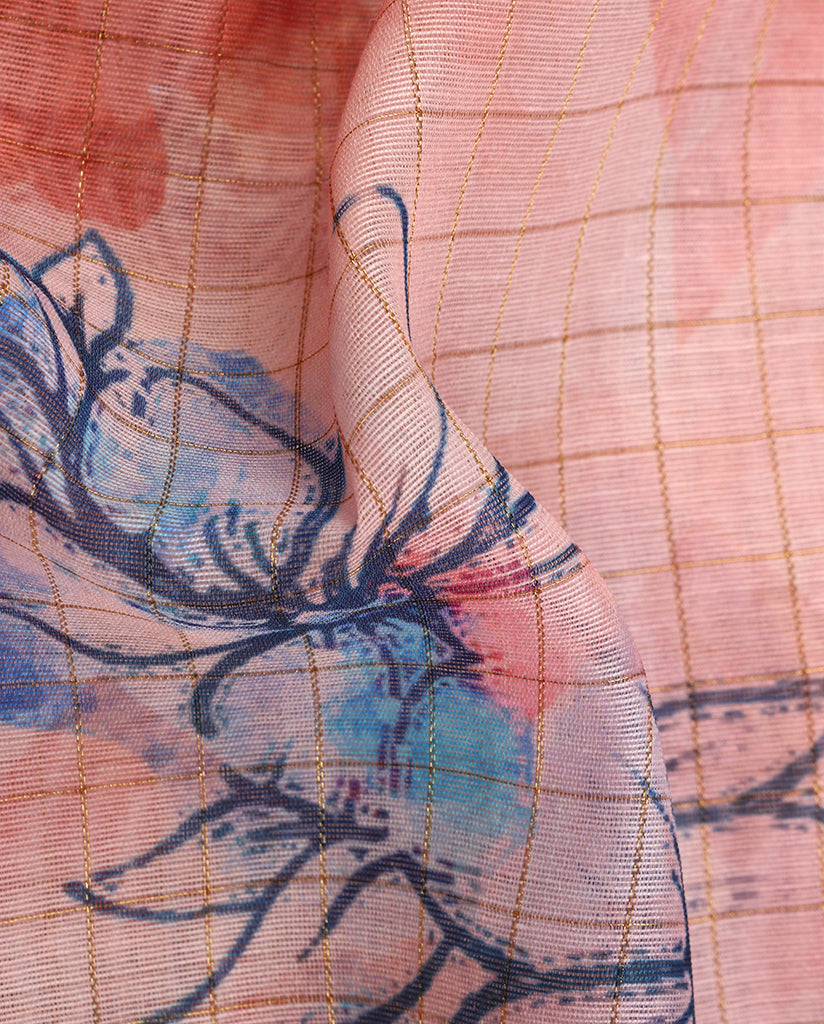 Light Orange And Blue Floral Pattern Digital Print Chanderi Lurex Saree With Blouse
