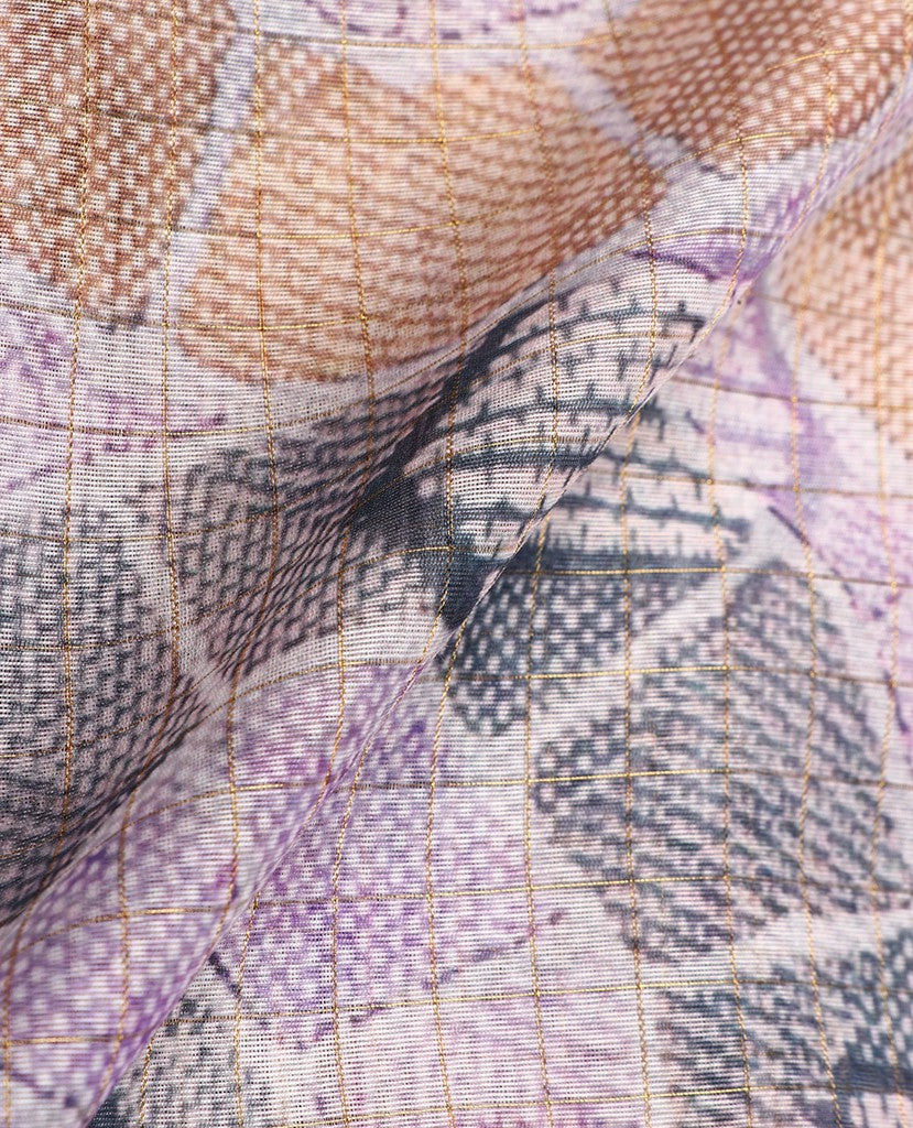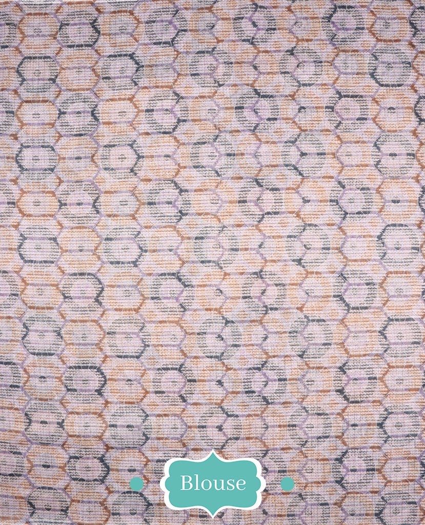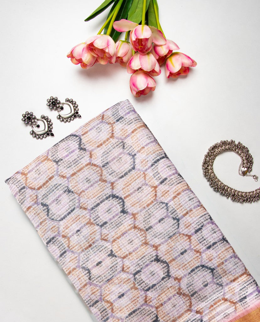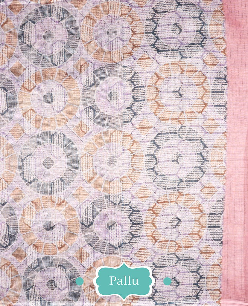 Light Purple And Grey Geometric Pattern Digital Print Kota Doria Saree With Blouse