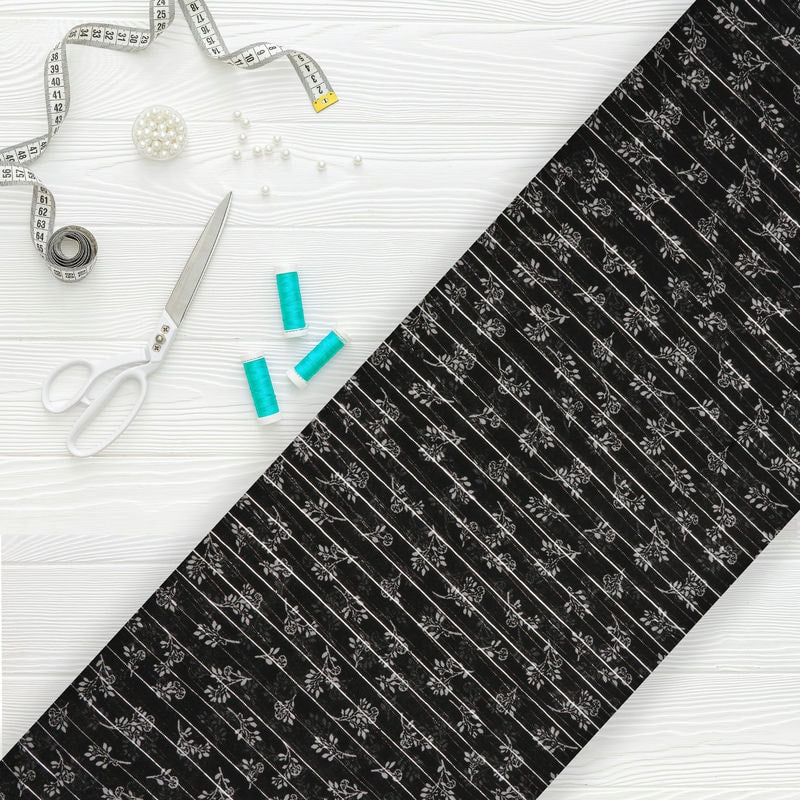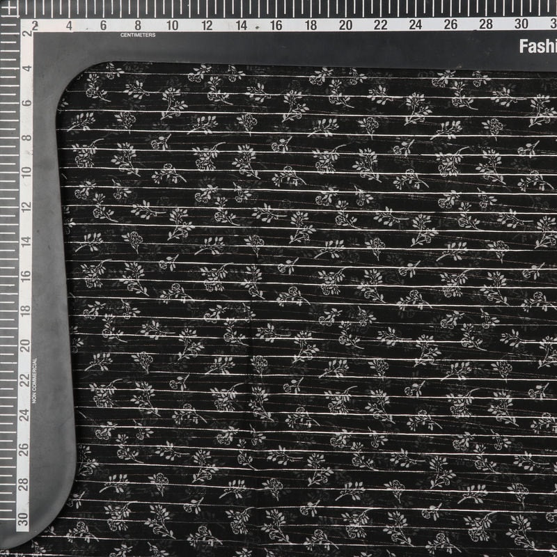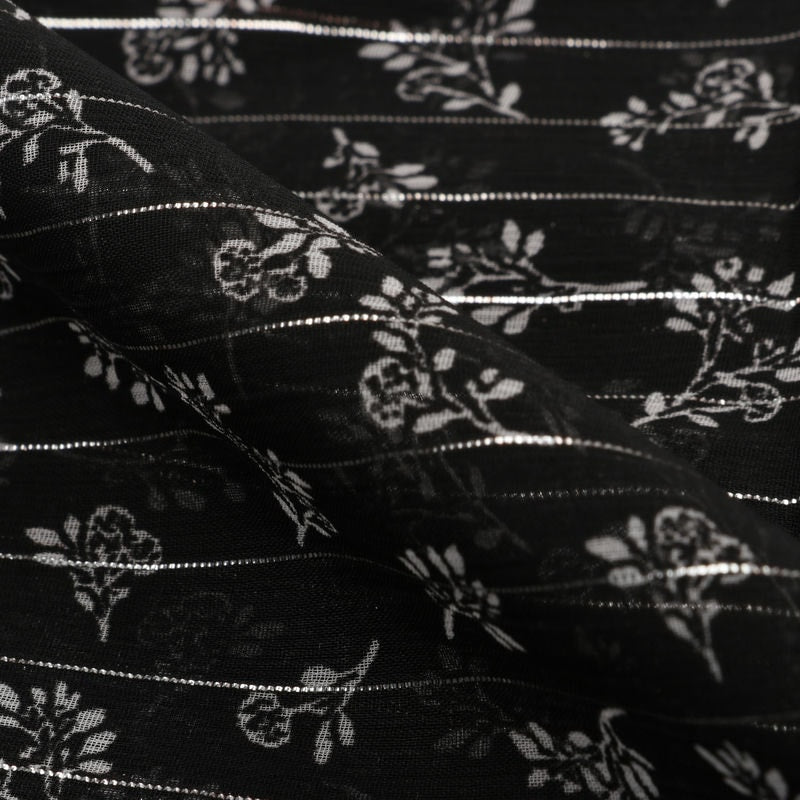 Black And White Floral Pattern Digital Print Chiffon Lurex Fabric