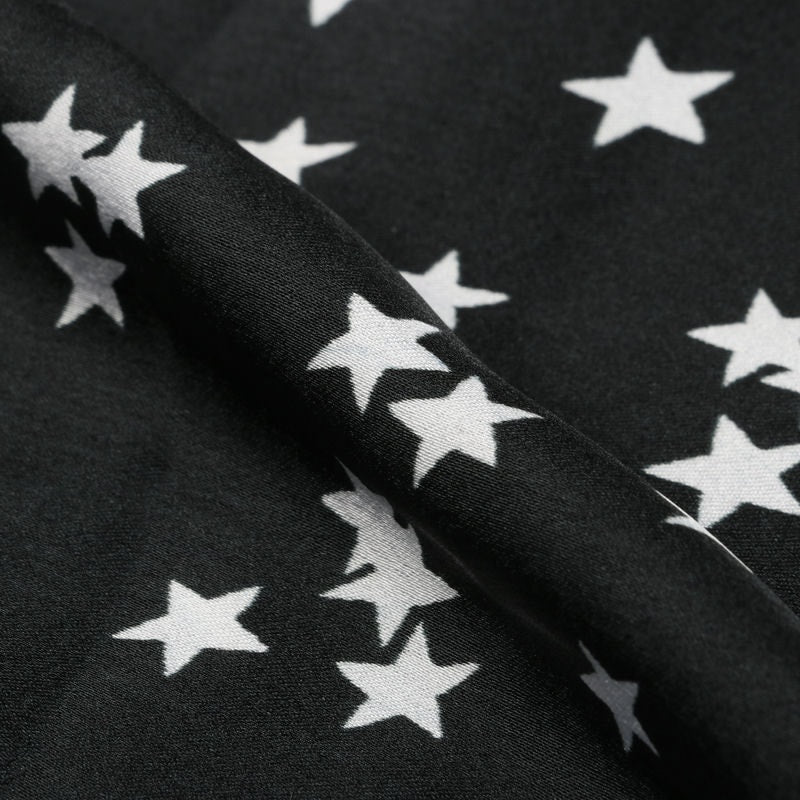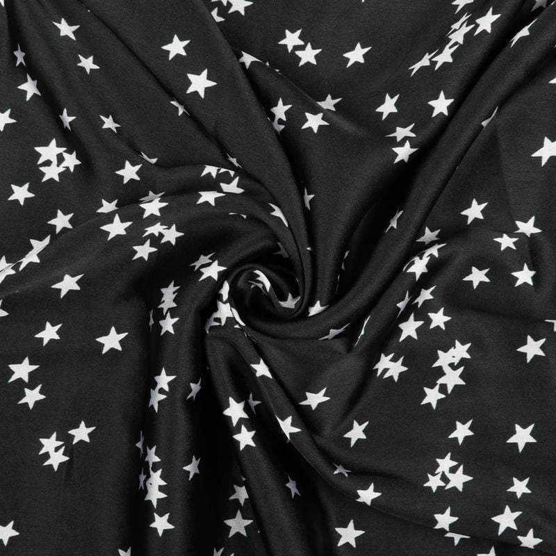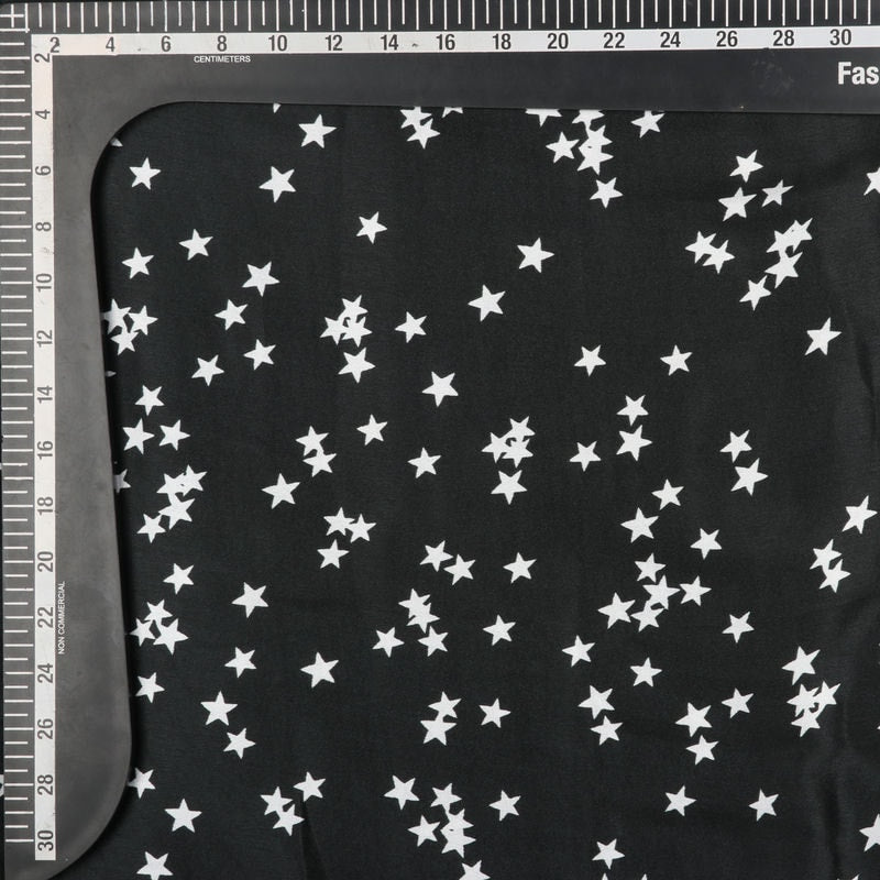 Black And White Star Pattern Screen Print Japan Satin Fabric