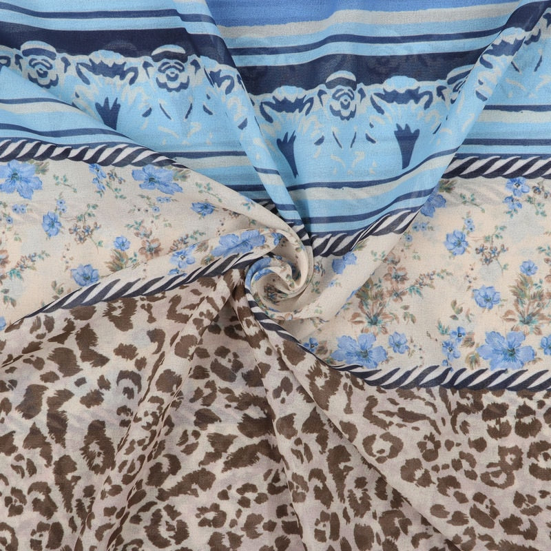 Blue And Beige Animal Pattern Screen Print Georgette Fabric
