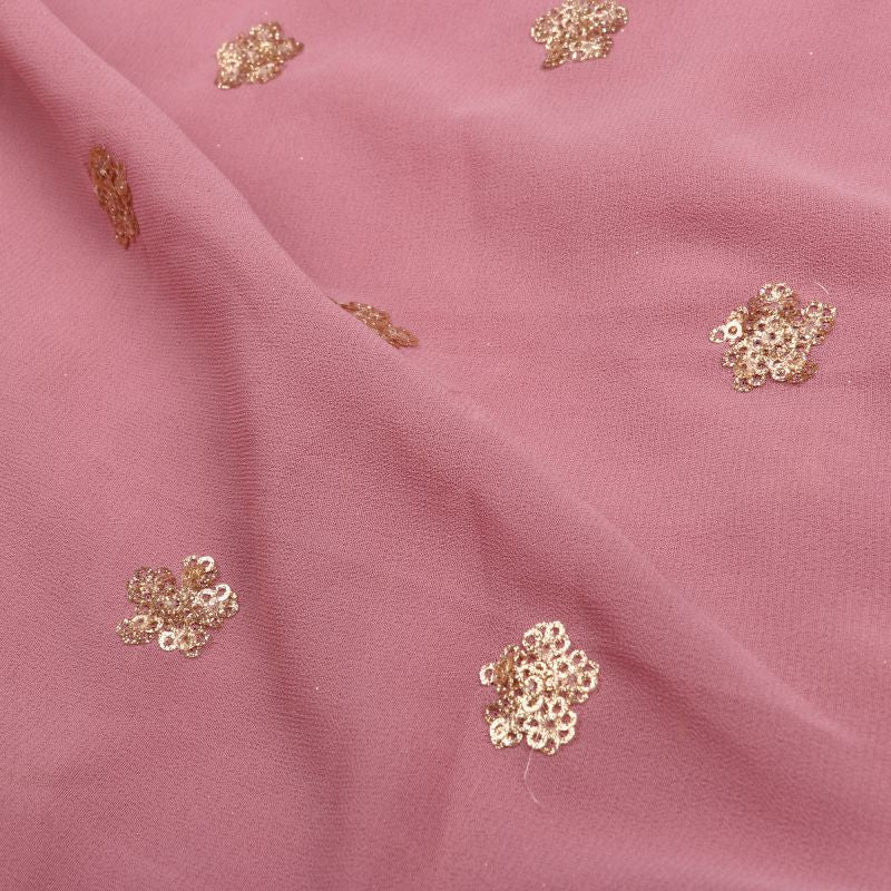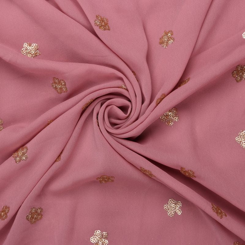 Dusty Pink Geometric Pattern Sequins Embroidery Georgette Fabric