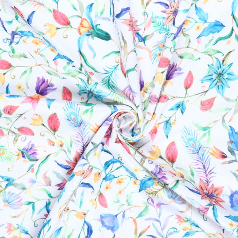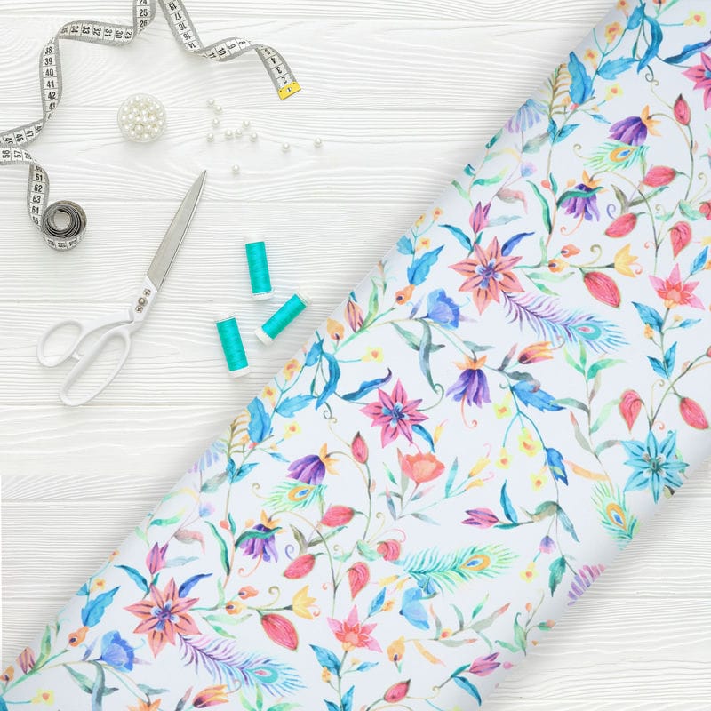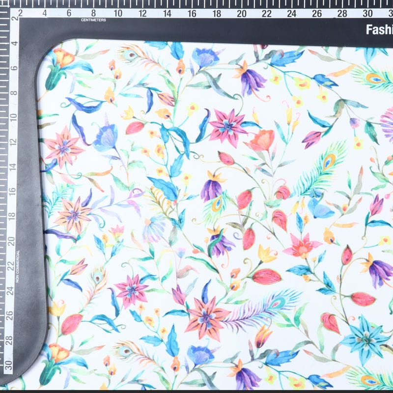 Multi Color Floral Pattern Digital Print Silk Satin Fabric