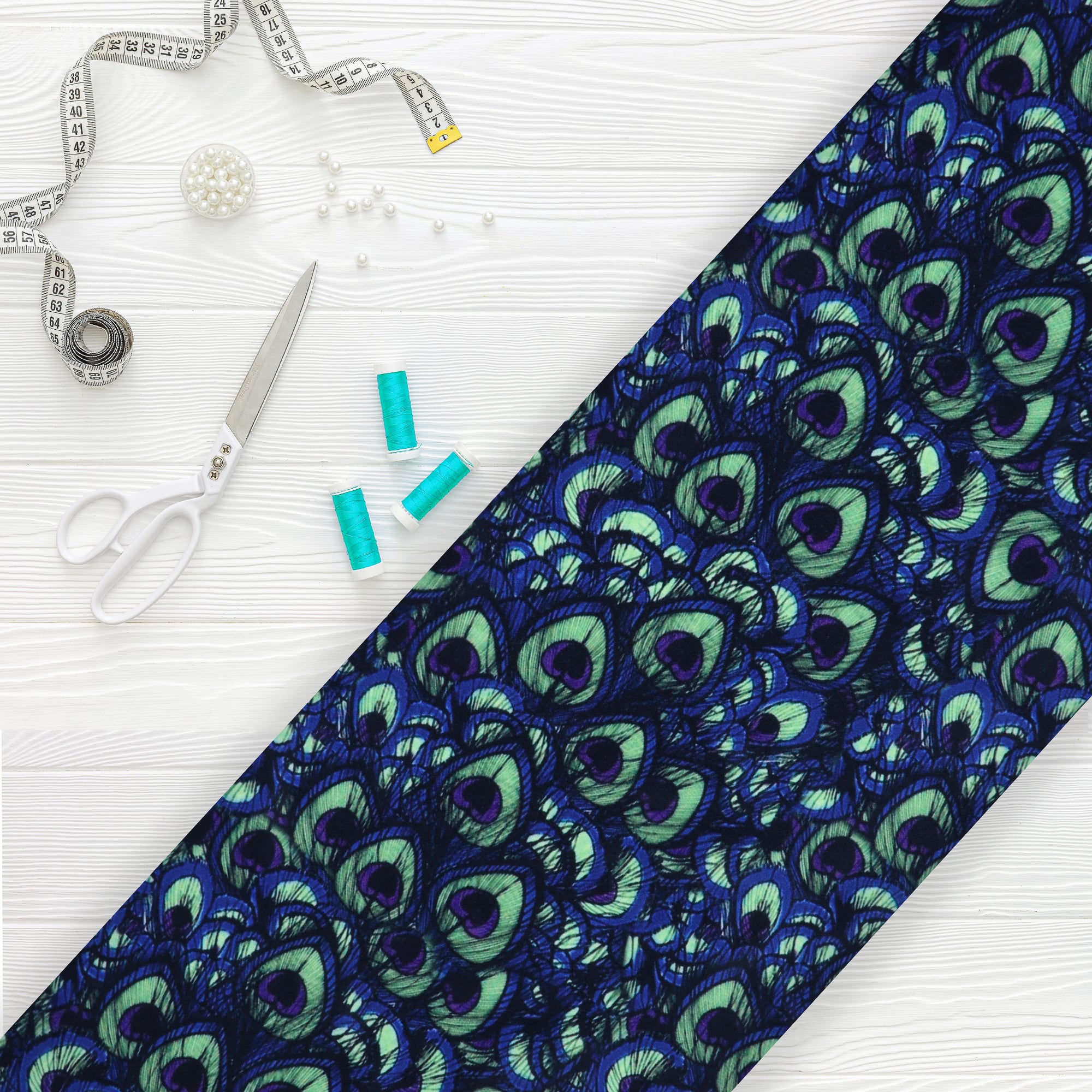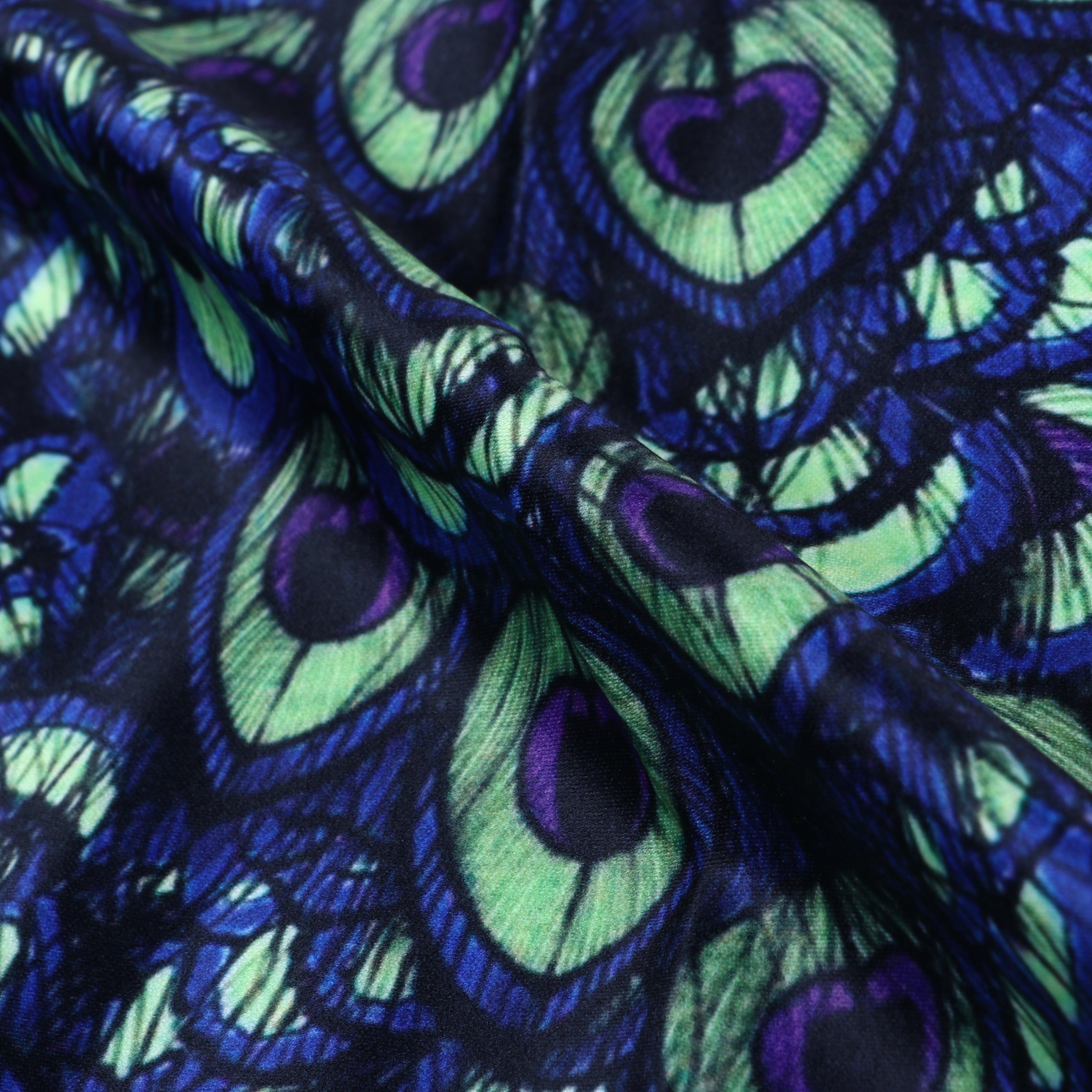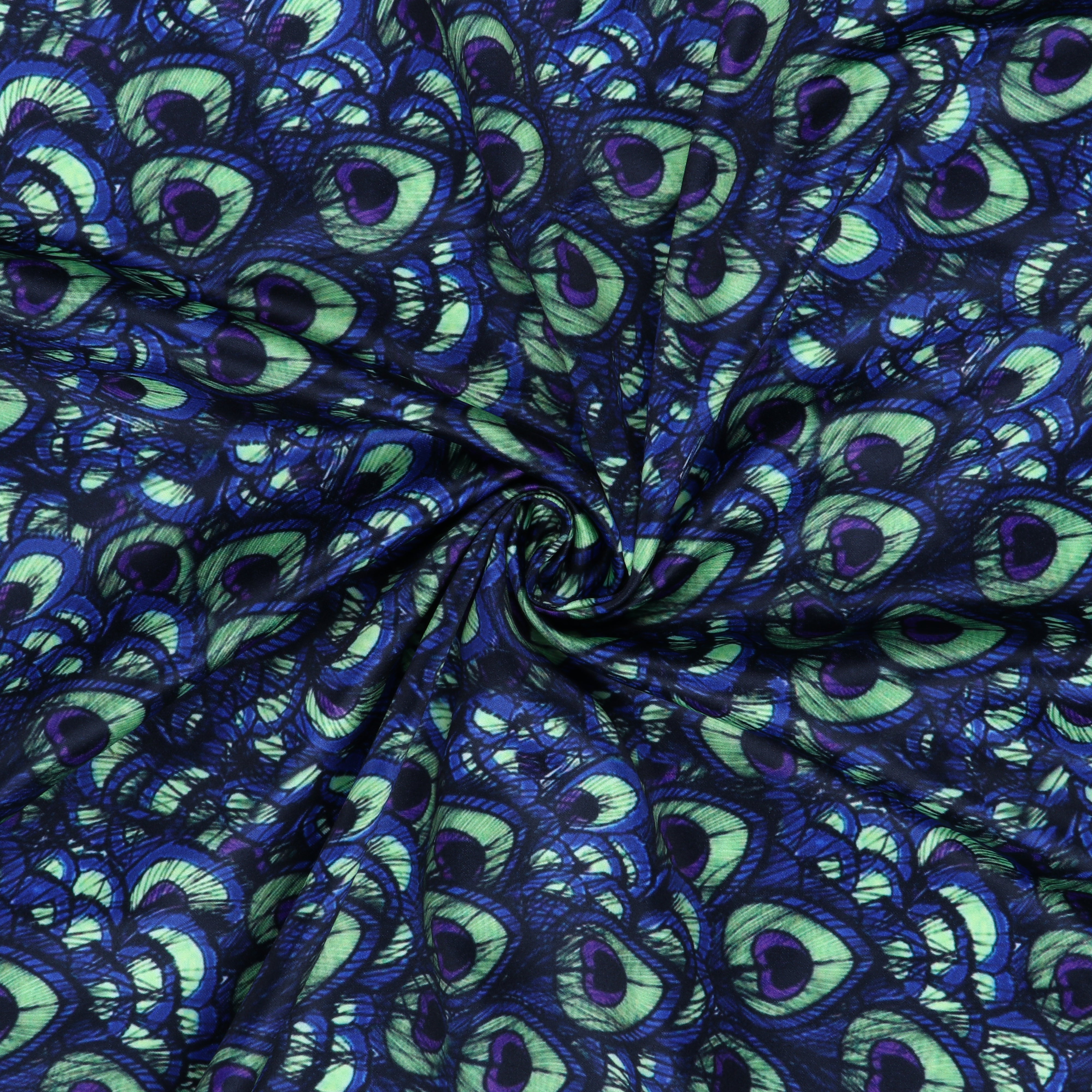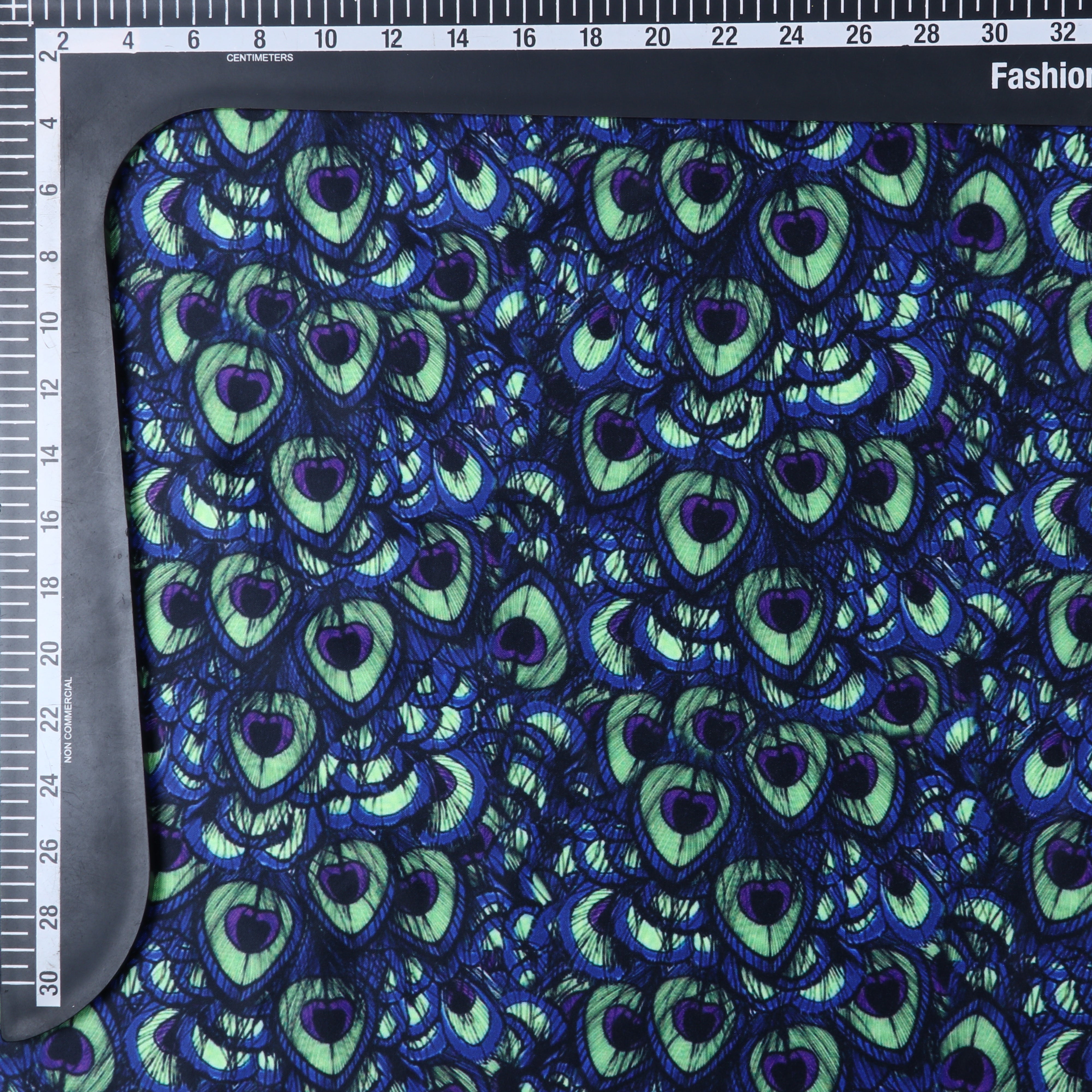 Blue And Green Morpich Pattern Digital Print Silk Satin Fabric