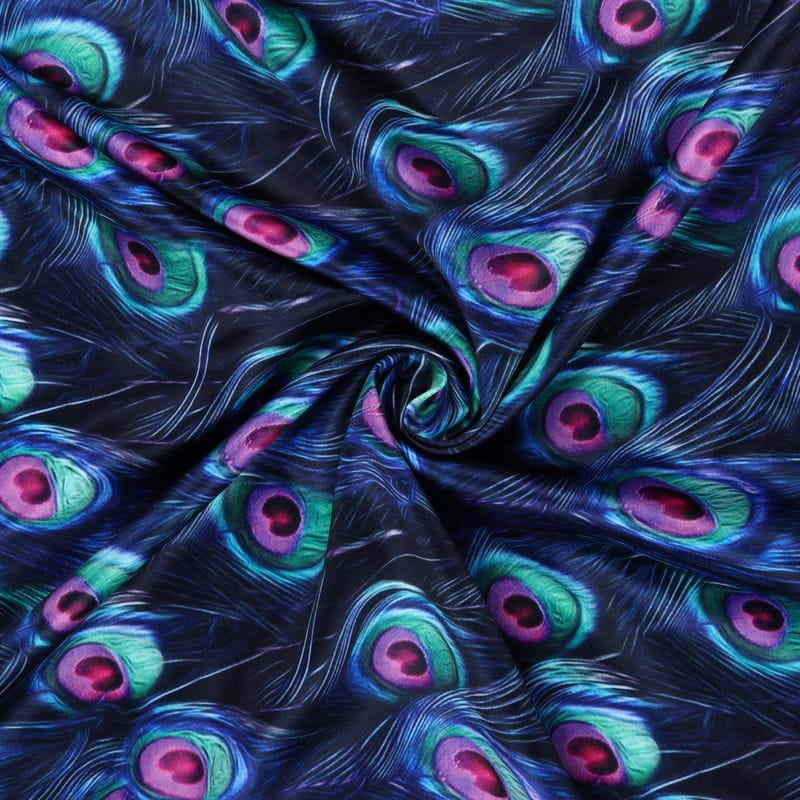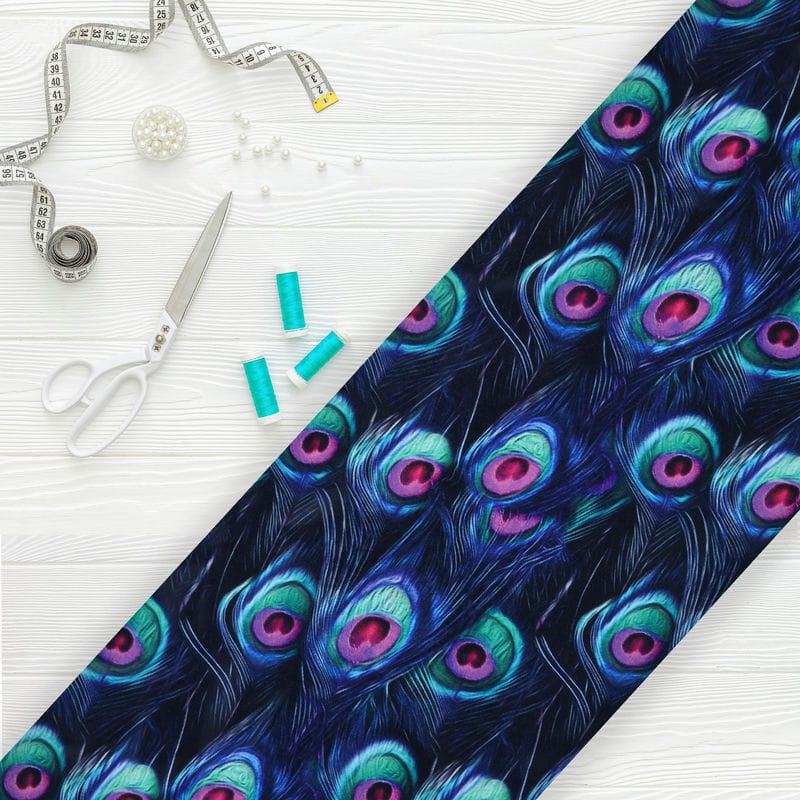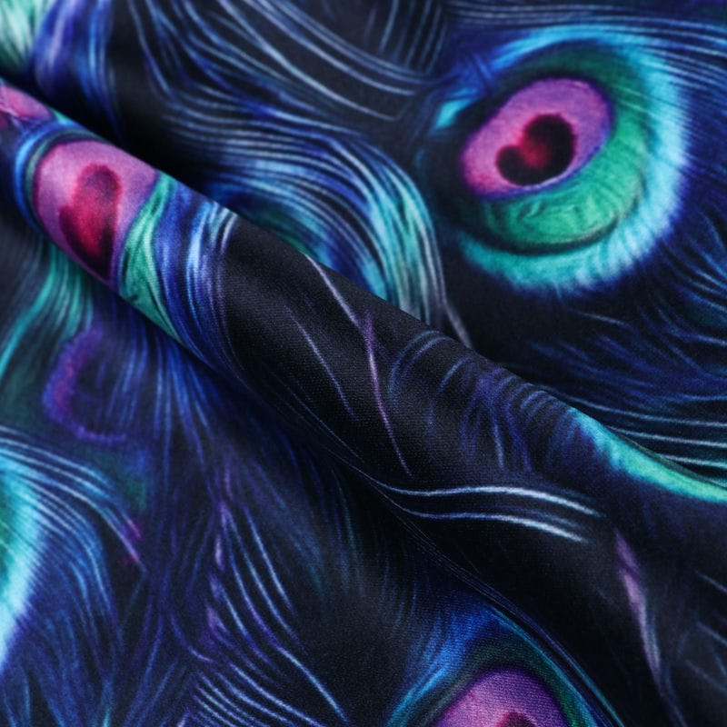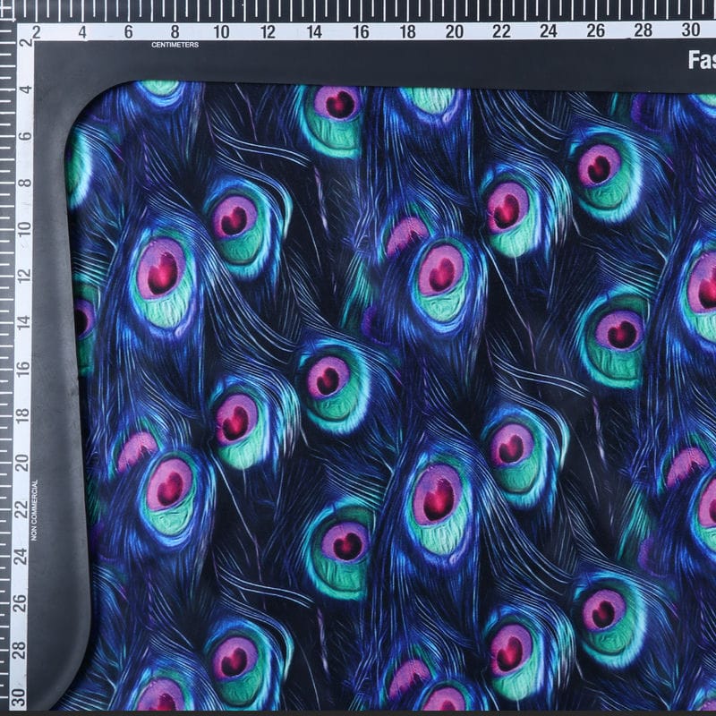 Blue And Turquoise Morpich Pattern Digital Print Silk Satin Fabric