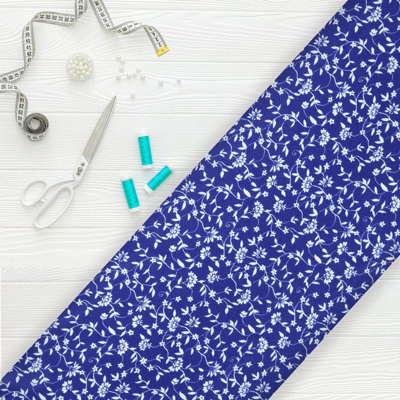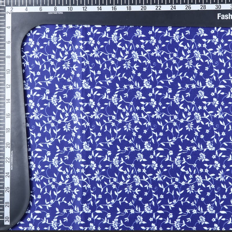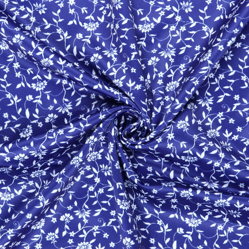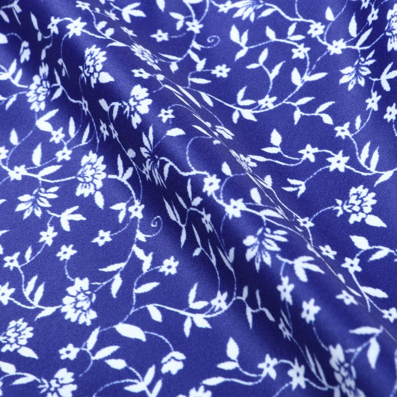 Blue And White Floral Pattern Digital Print Silk Satin Fabric
