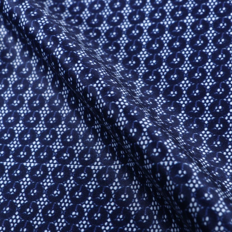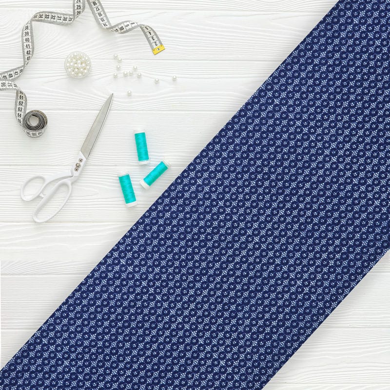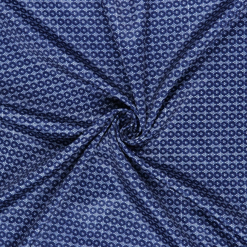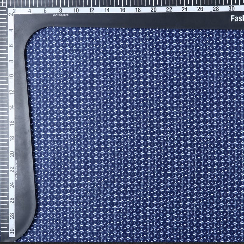 Blue And White Geometric Pattern Digital Print Silk Satin Fabric