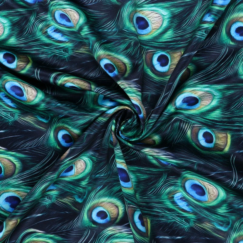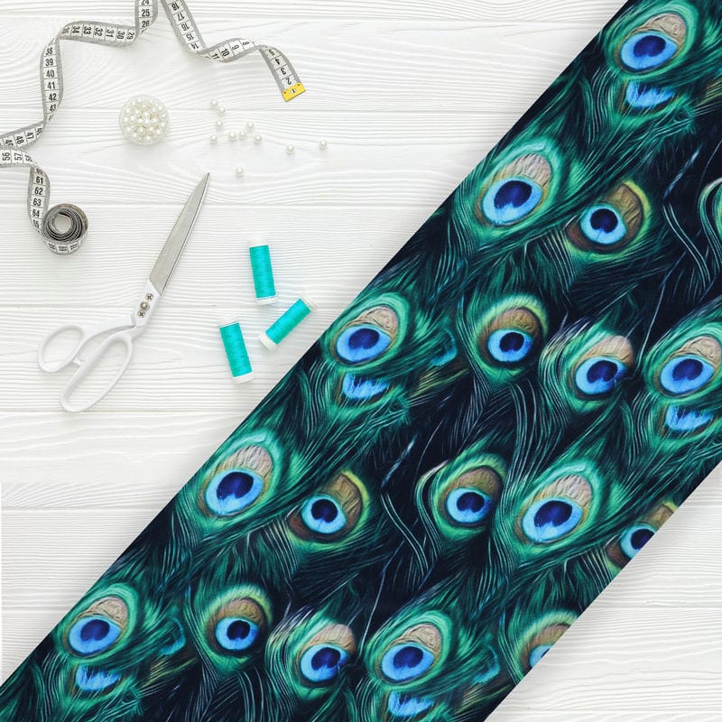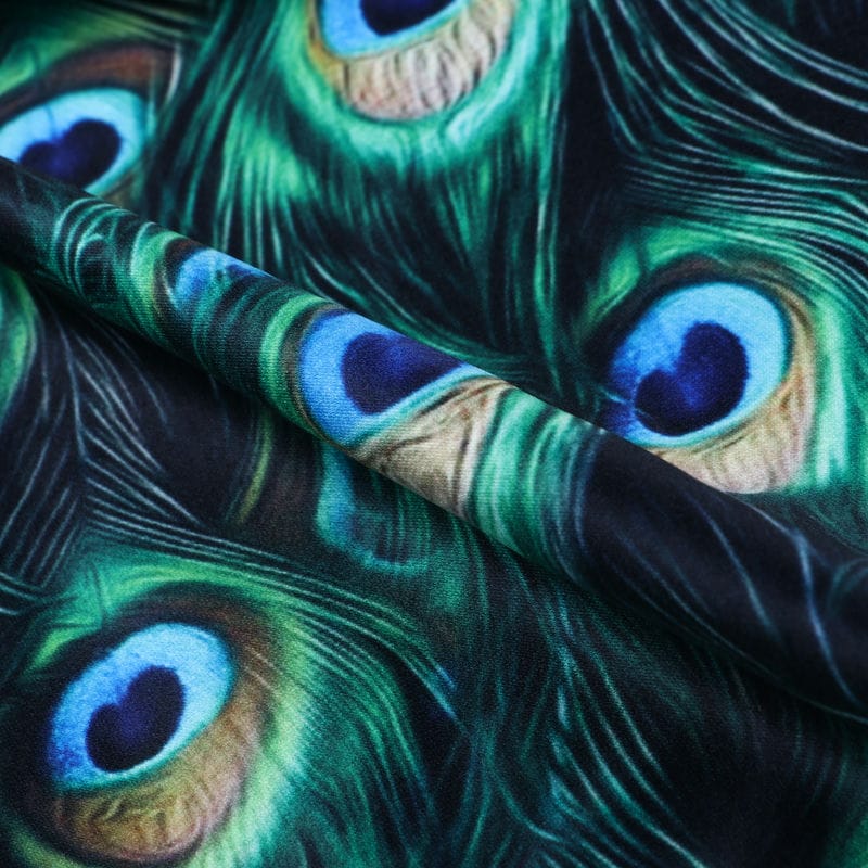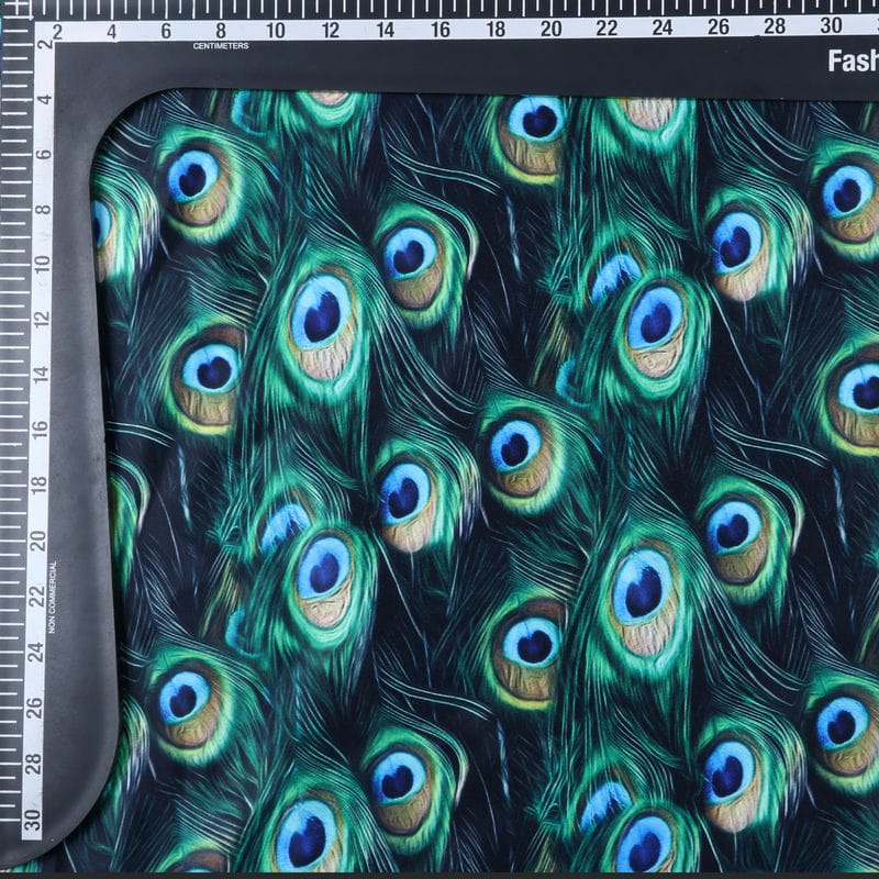 Green And Blue Morpich Pattern Digital Print Silk Satin Fabric