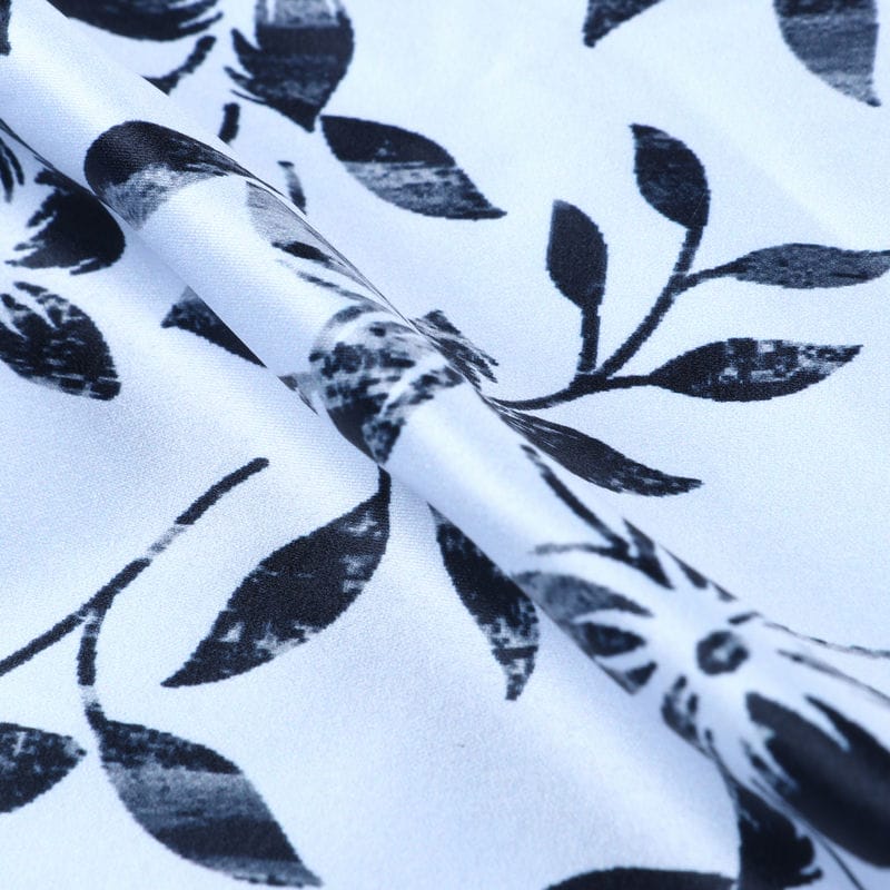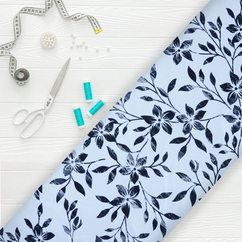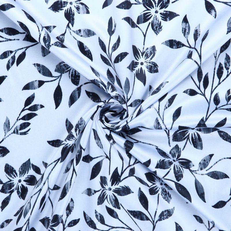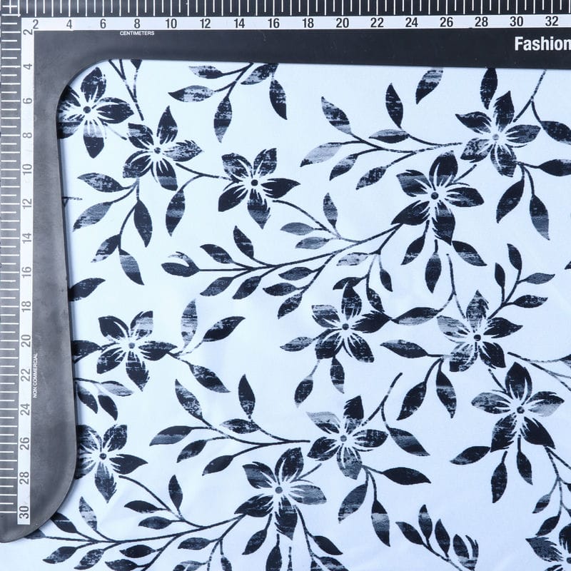 Grey Lavender And Black Floral Pattern Digital Print Silk Satin Fabric