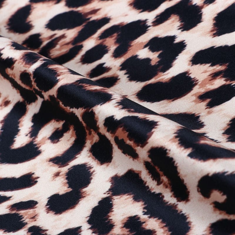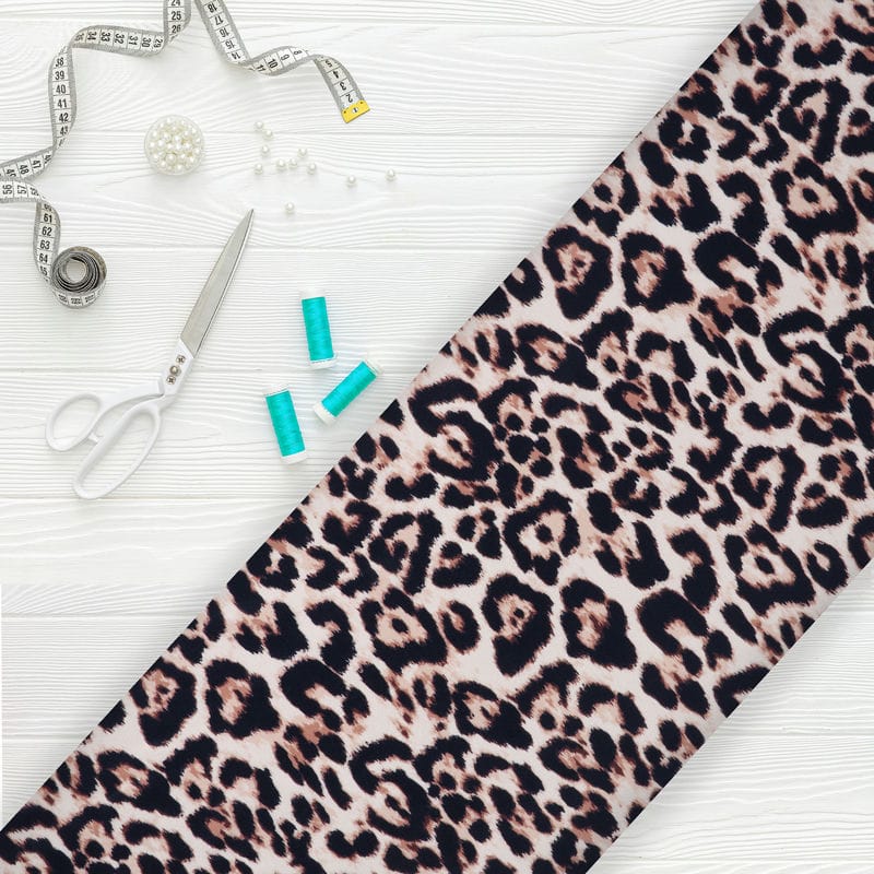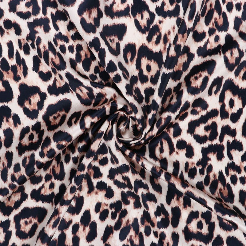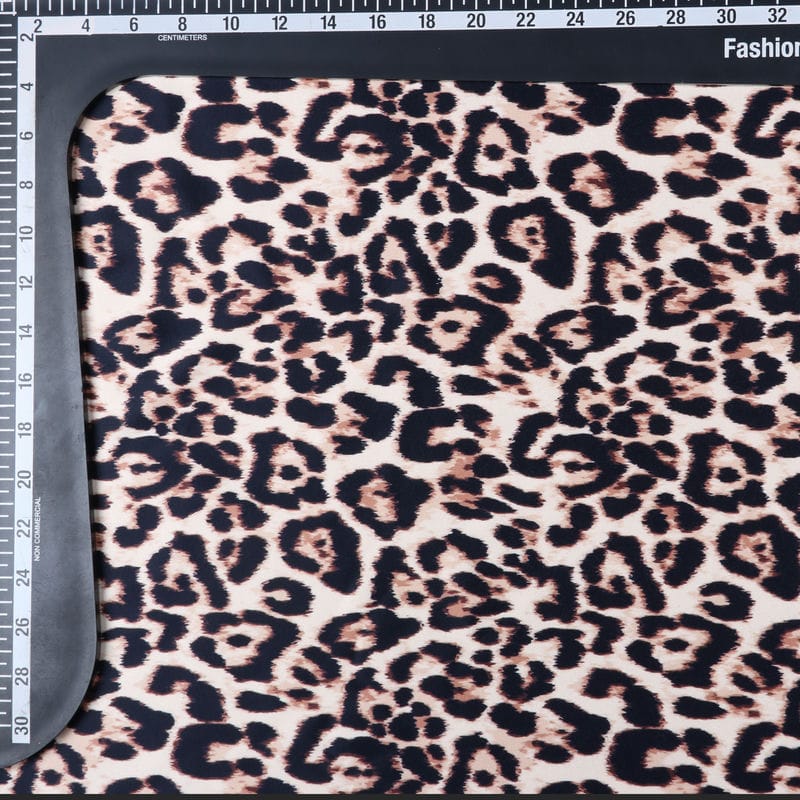 Light Brown And Black Animal Pattern Digital Print Silk Satin Fabric