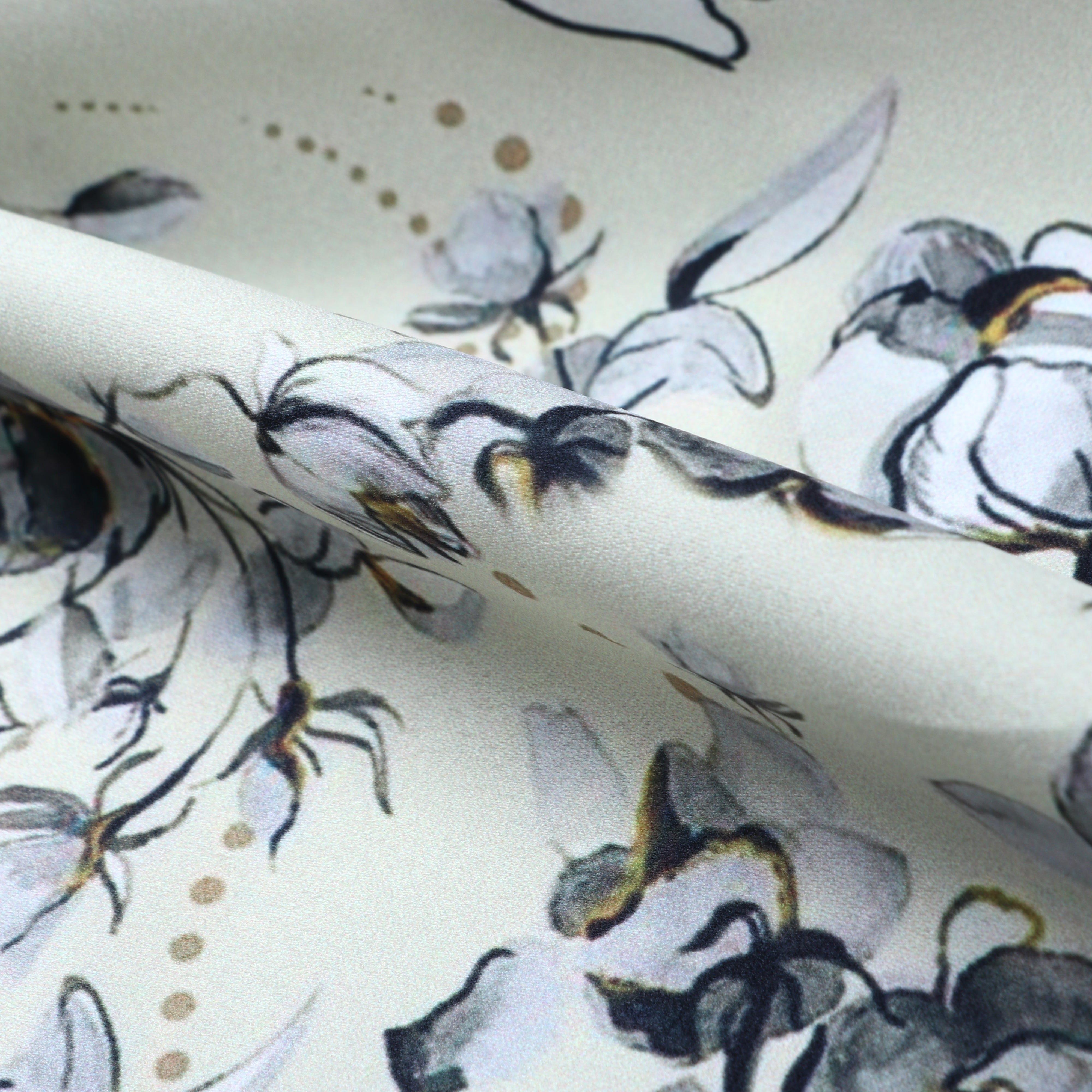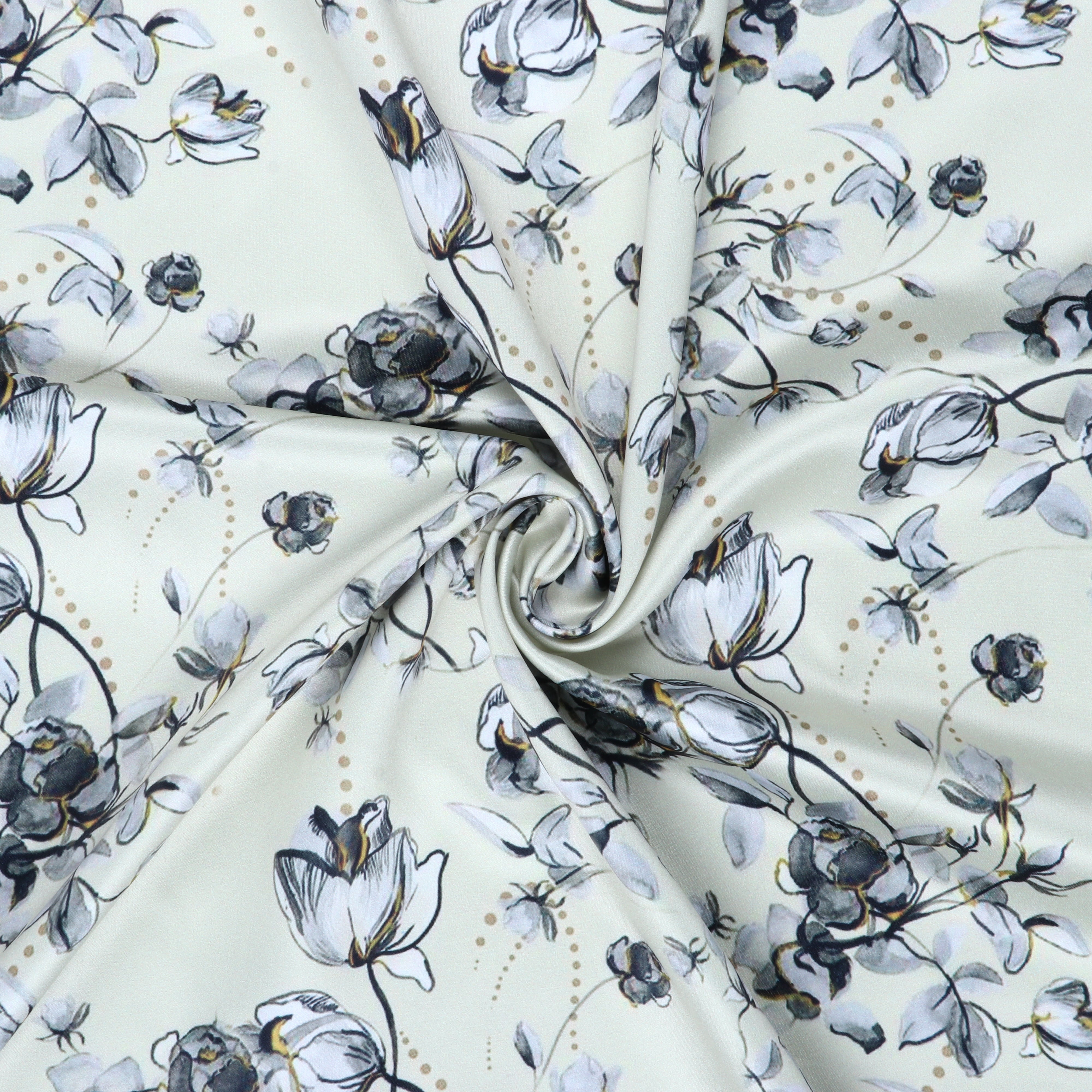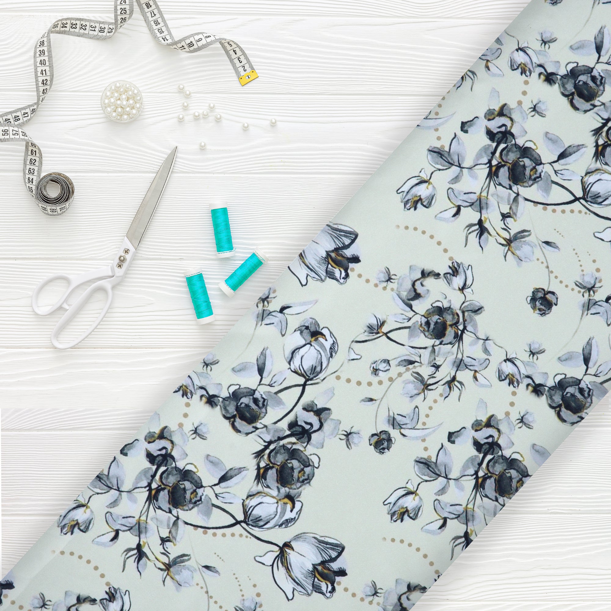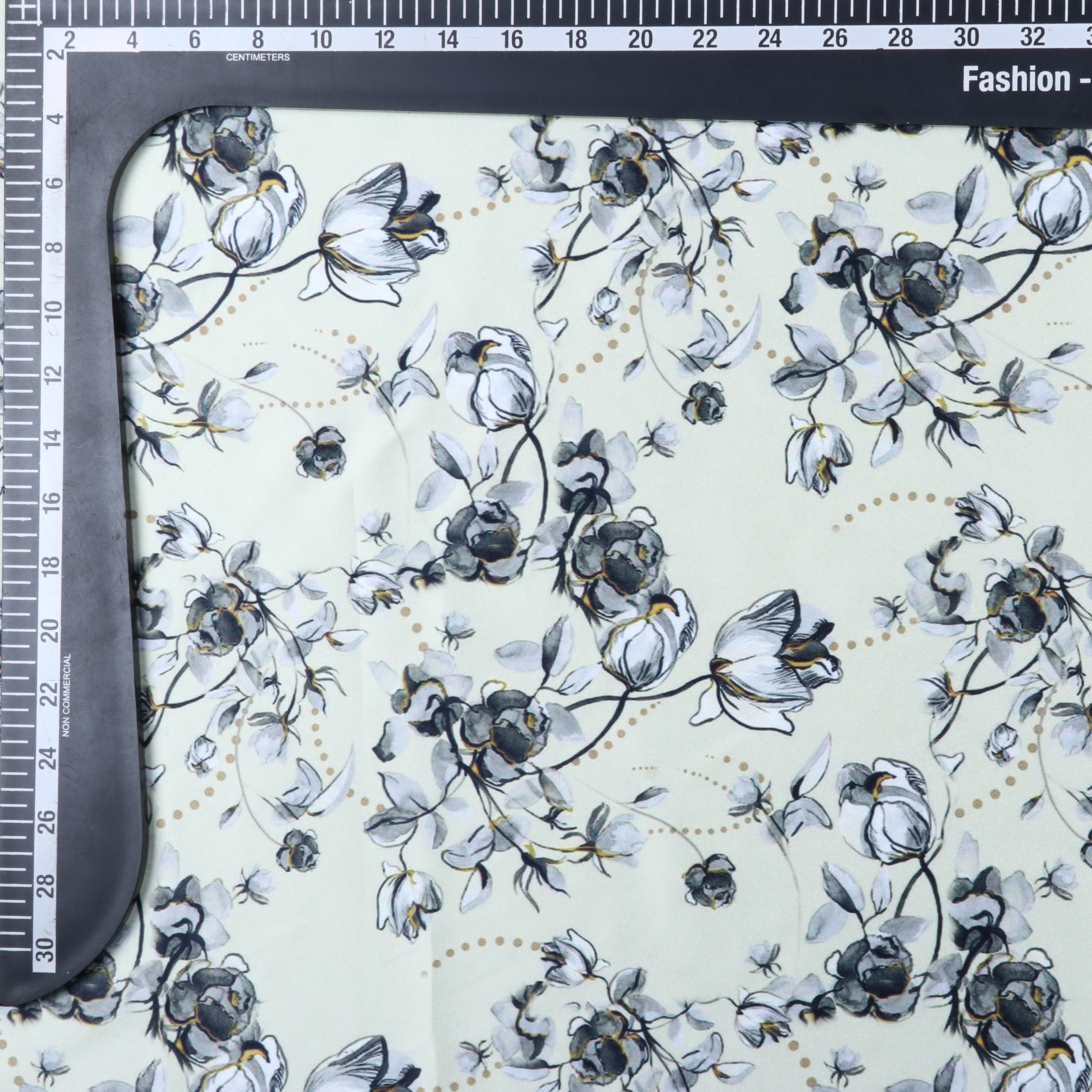 Light Green And Grey Floral Pattern Digital Print Silk Satin Fabric