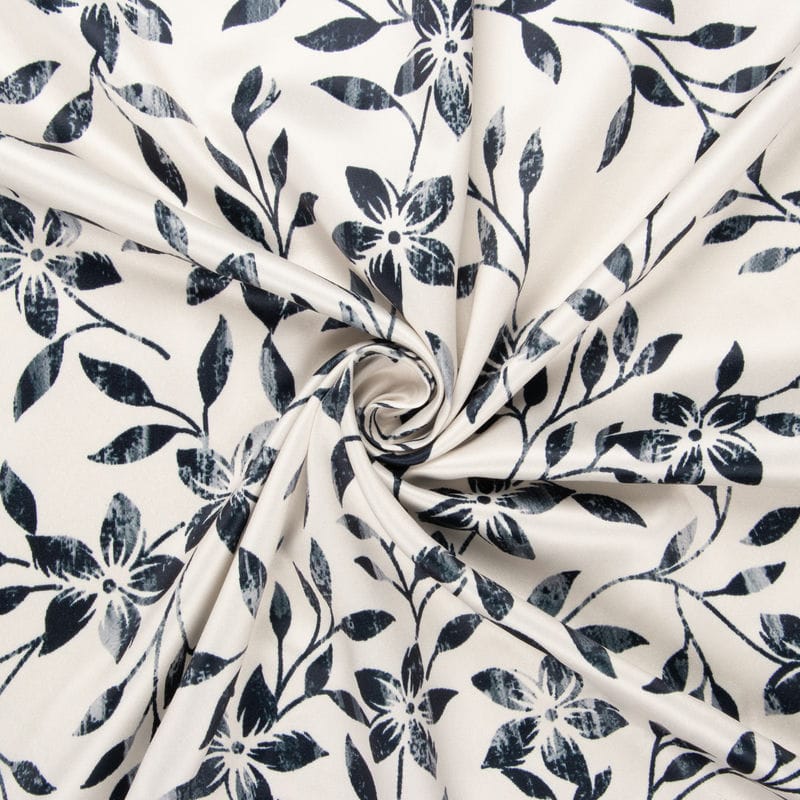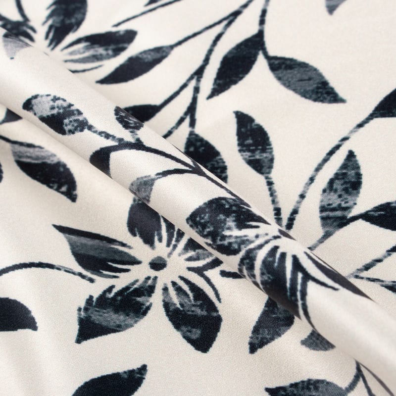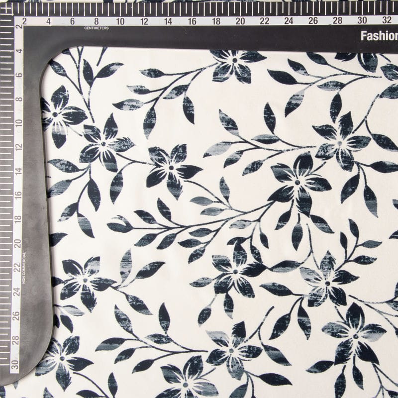 Light Grey And Black Floral Pattern Digital Print Silk Satin Fabric