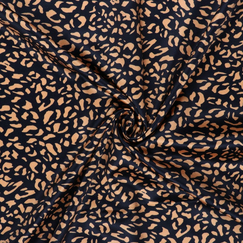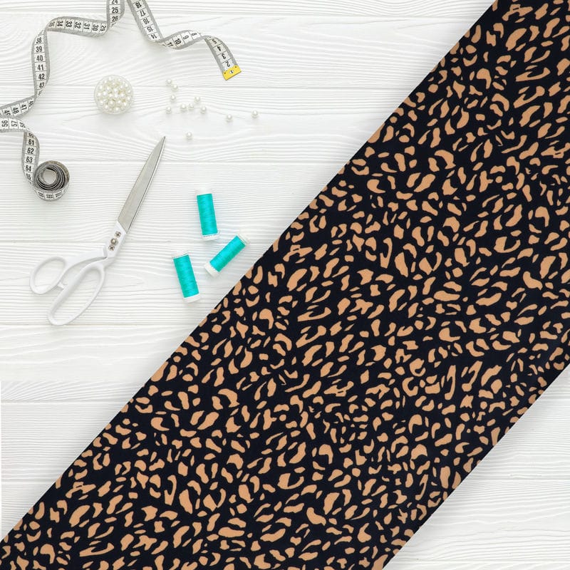 Mustard Yellow And Black Abstract Pattern Digital Print Silk Satin Fabric