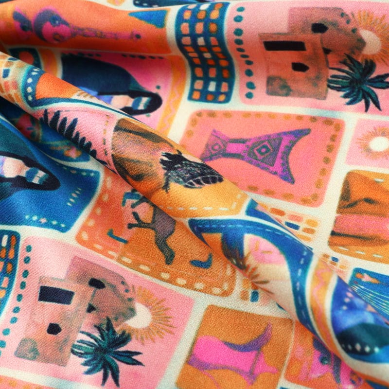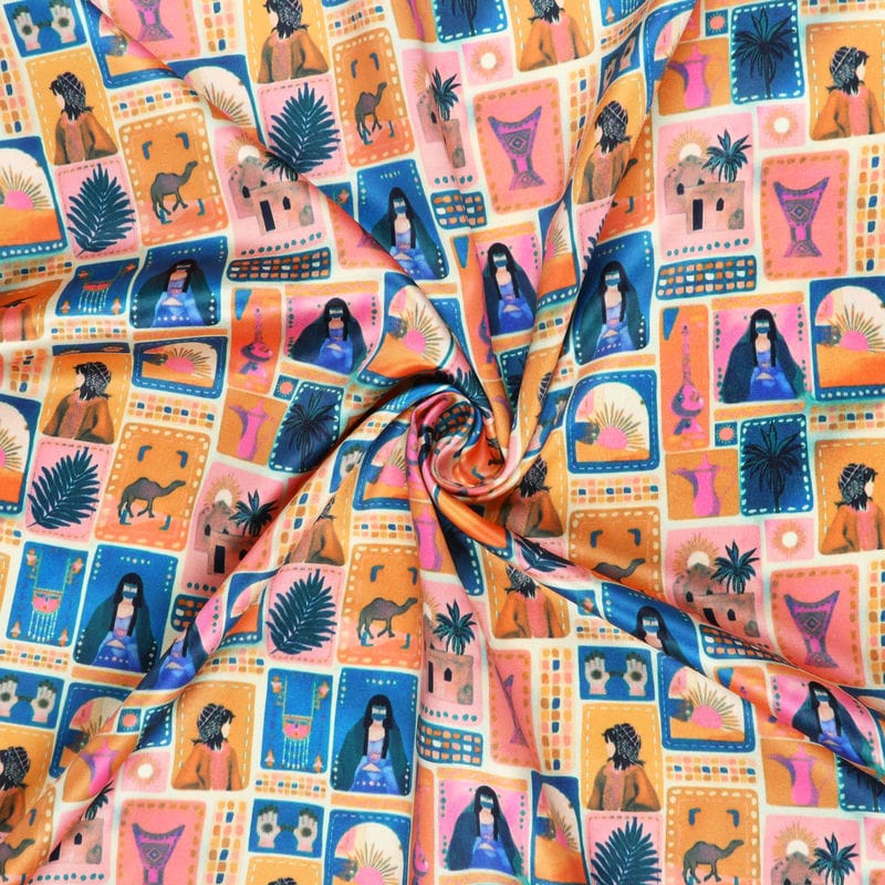 Fabmyntra’s Silk satin is a luxuriously soft, smooth, silky and glistening fabric having one shiny and one dull side. It is appreciated amongst our clients for its colorfastness, profuse color pattern, skin affability and smooth finish. Due to its elegant and classy appearance, it is preferably used for designing upholstery, furnishings, home decors, chic and stylish scarves and practically every type of outfits and attire.