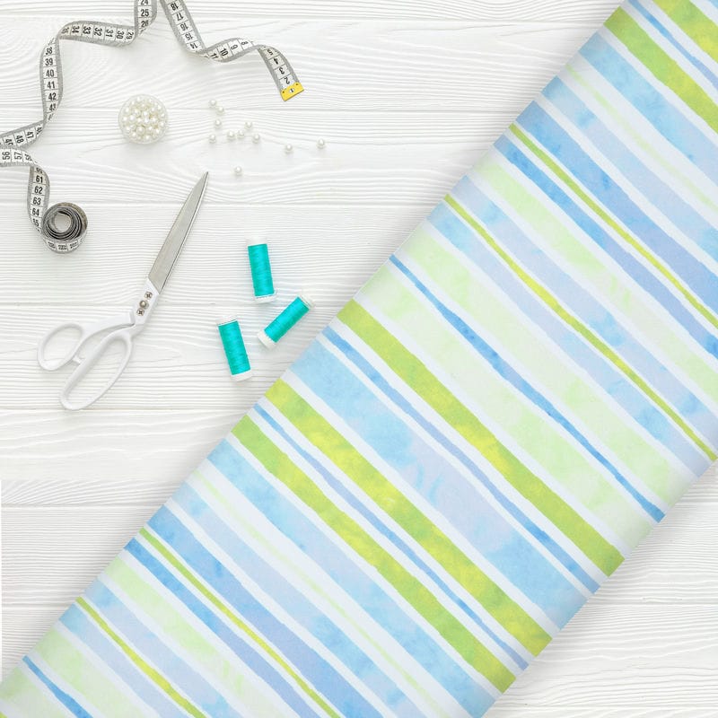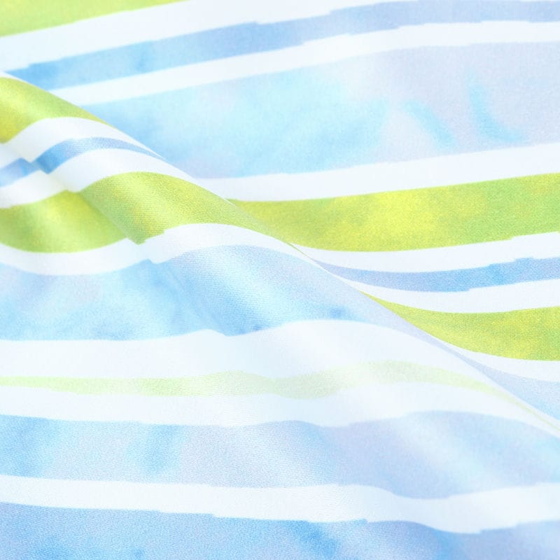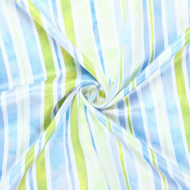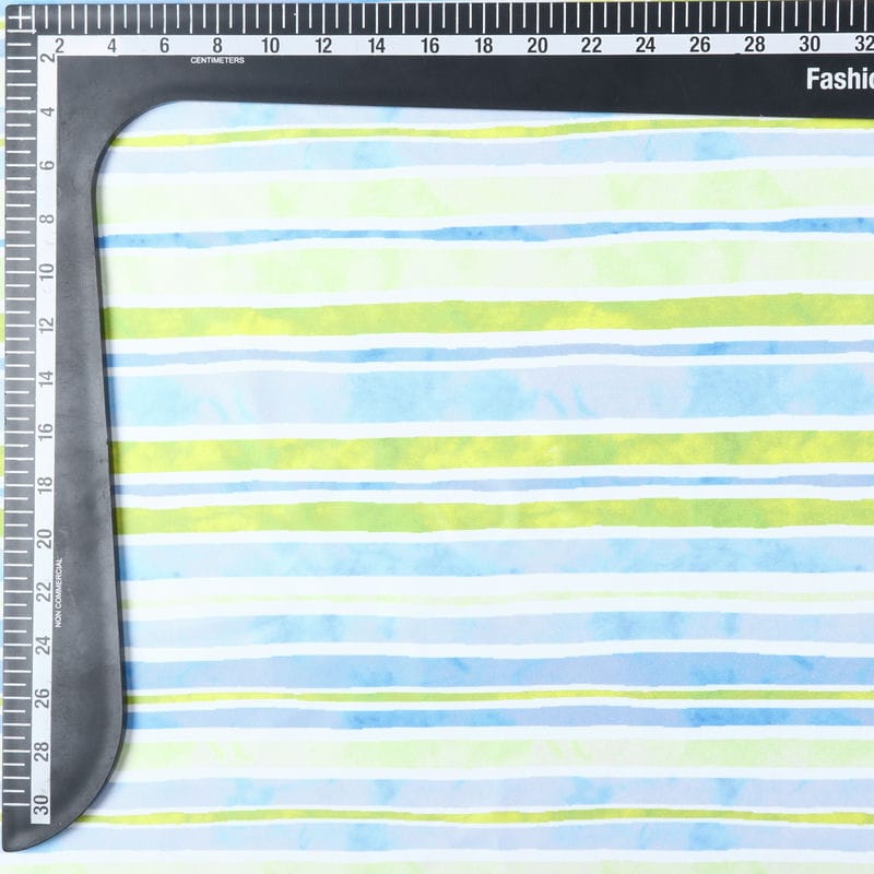 Olive Green And Sky Blue Stripes Pattern Digital Print Silk Satin Fabric