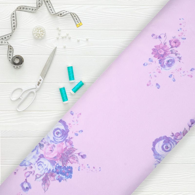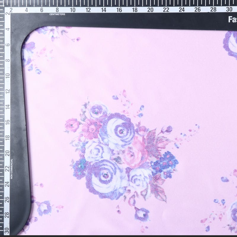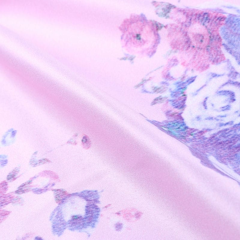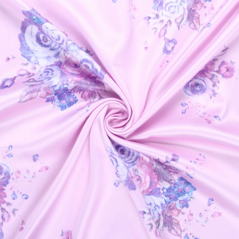 Pink And Blue Floral Pattern Digital Print Silk Satin Fabric