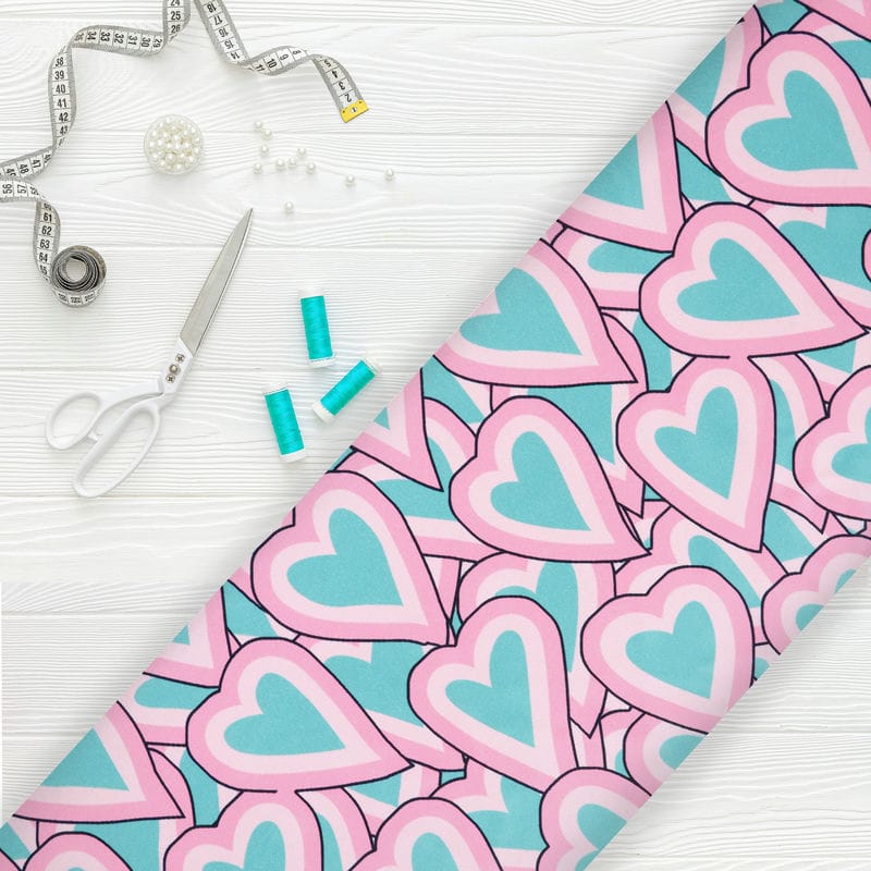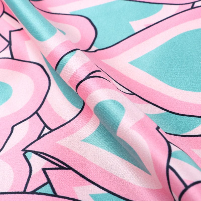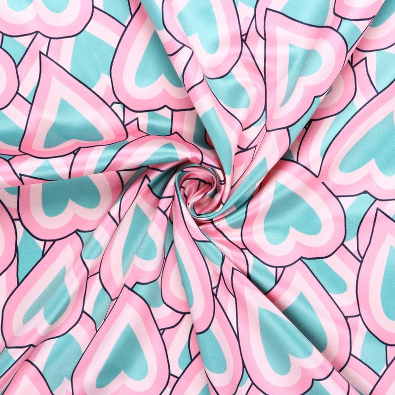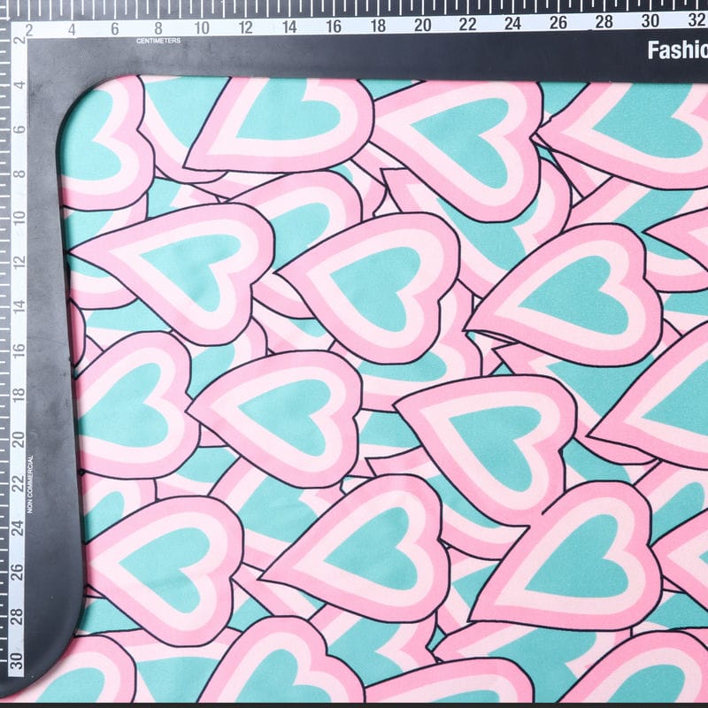 Pink And Grey Heart Pattern Digital Print Silk Satin Fabric