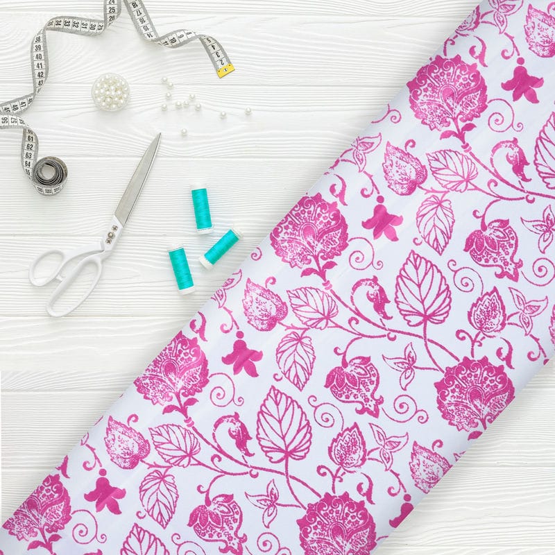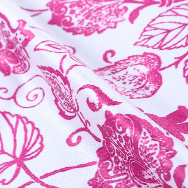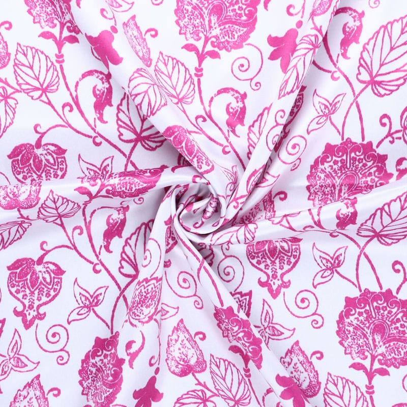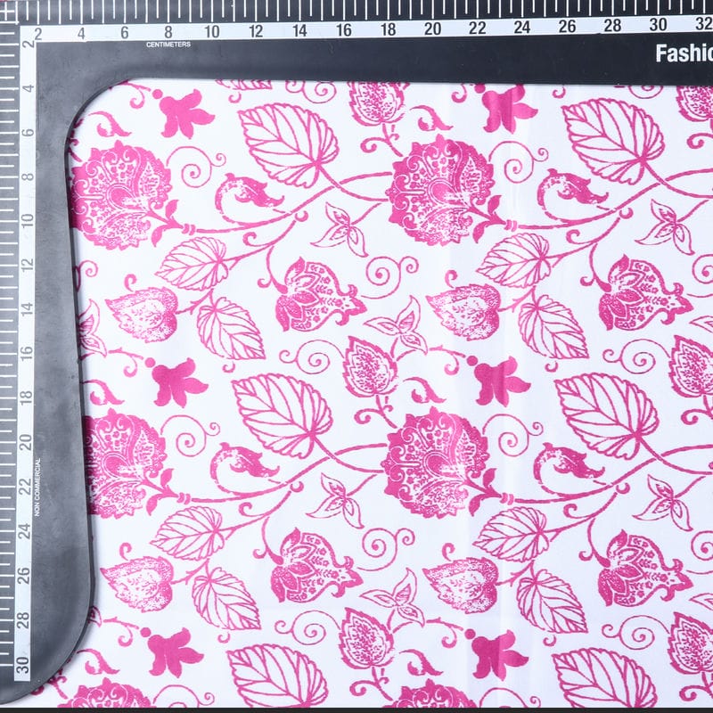 Pink And White Floral Pattern Digital Print Silk Satin Fabric
