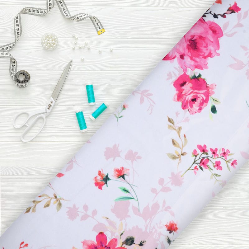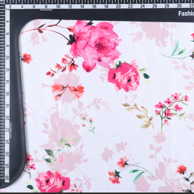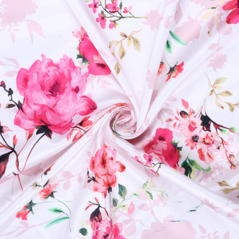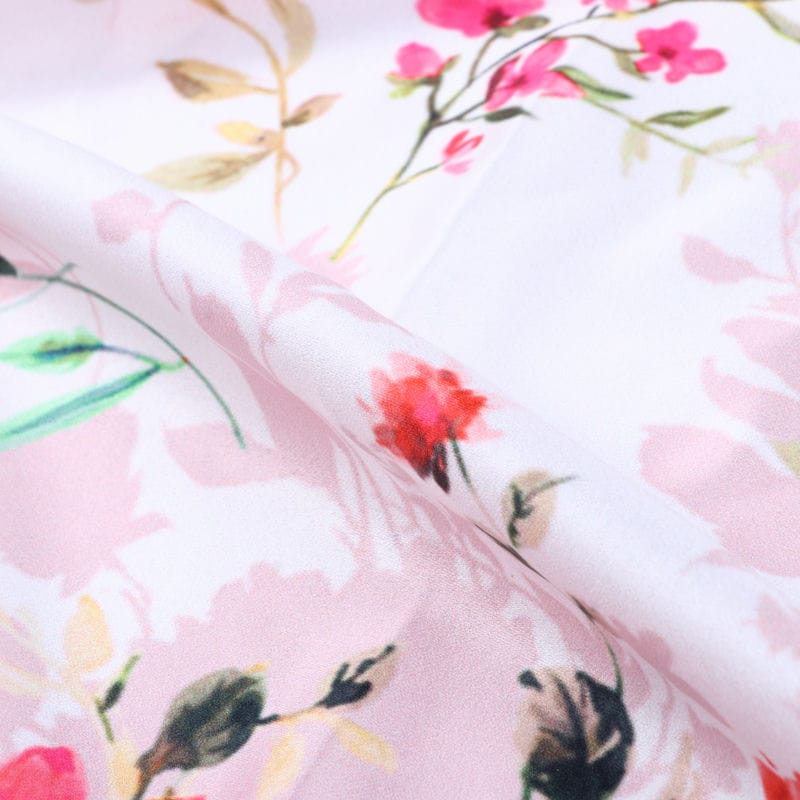 Pink And White Floral Pattern Digital Print Silk Satin Fabric