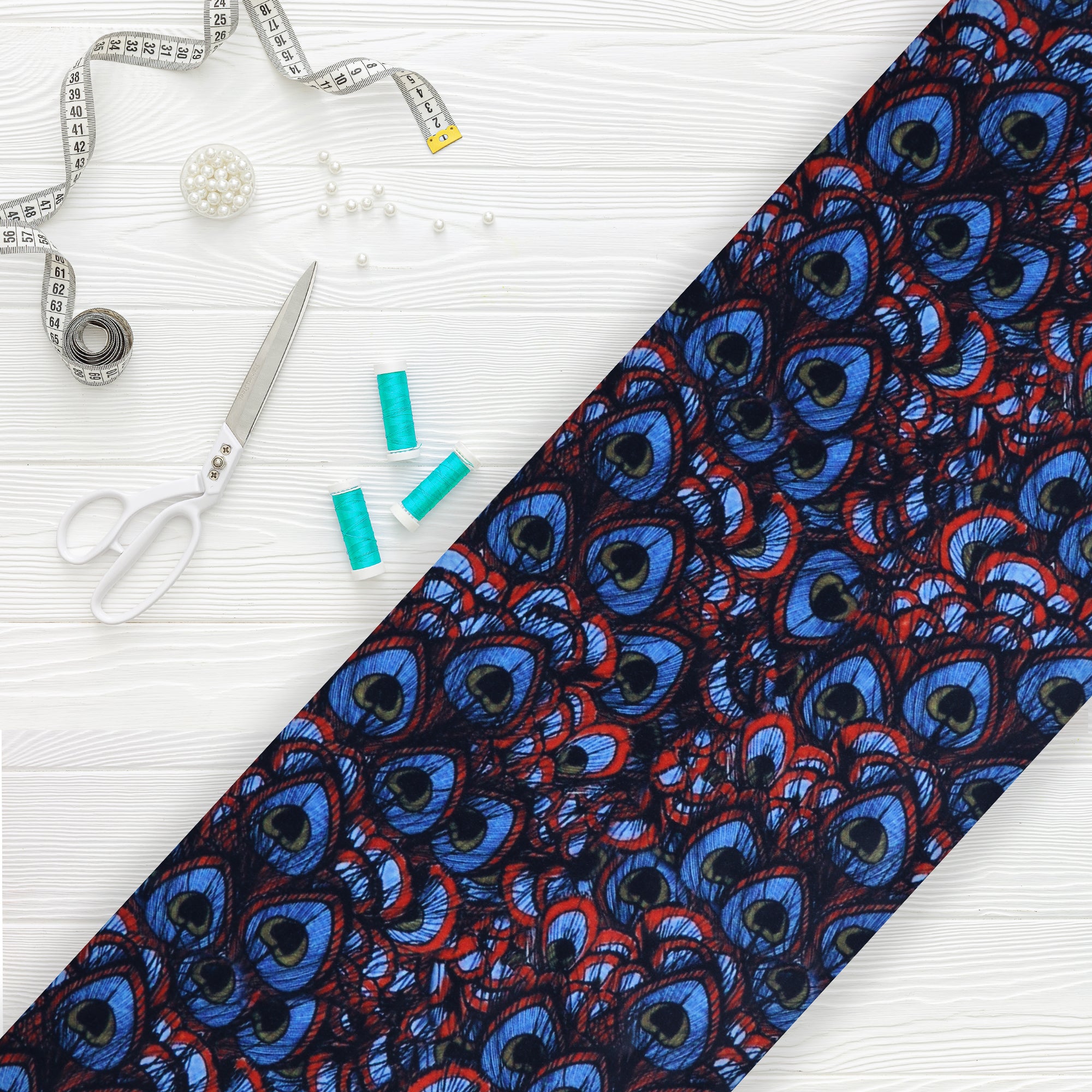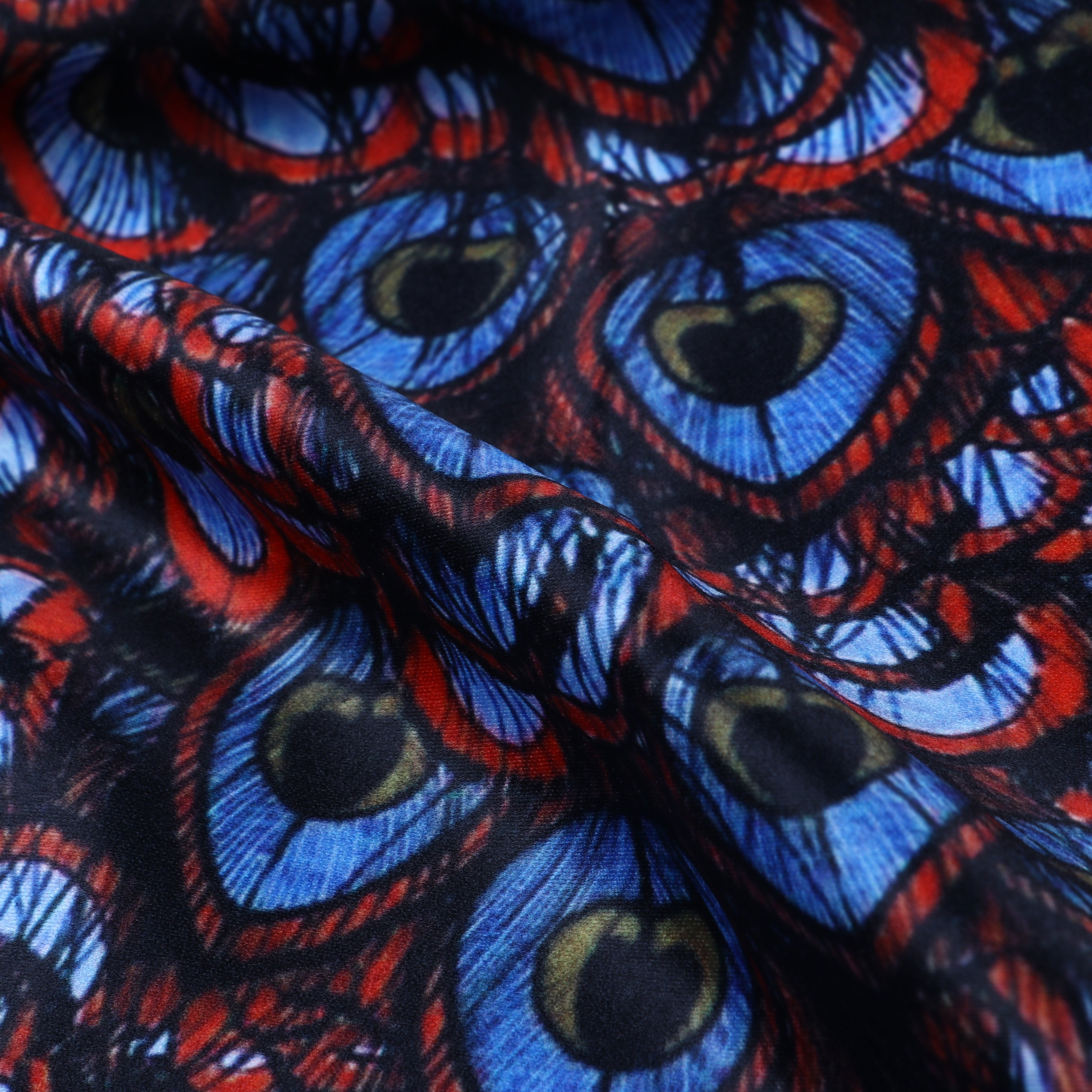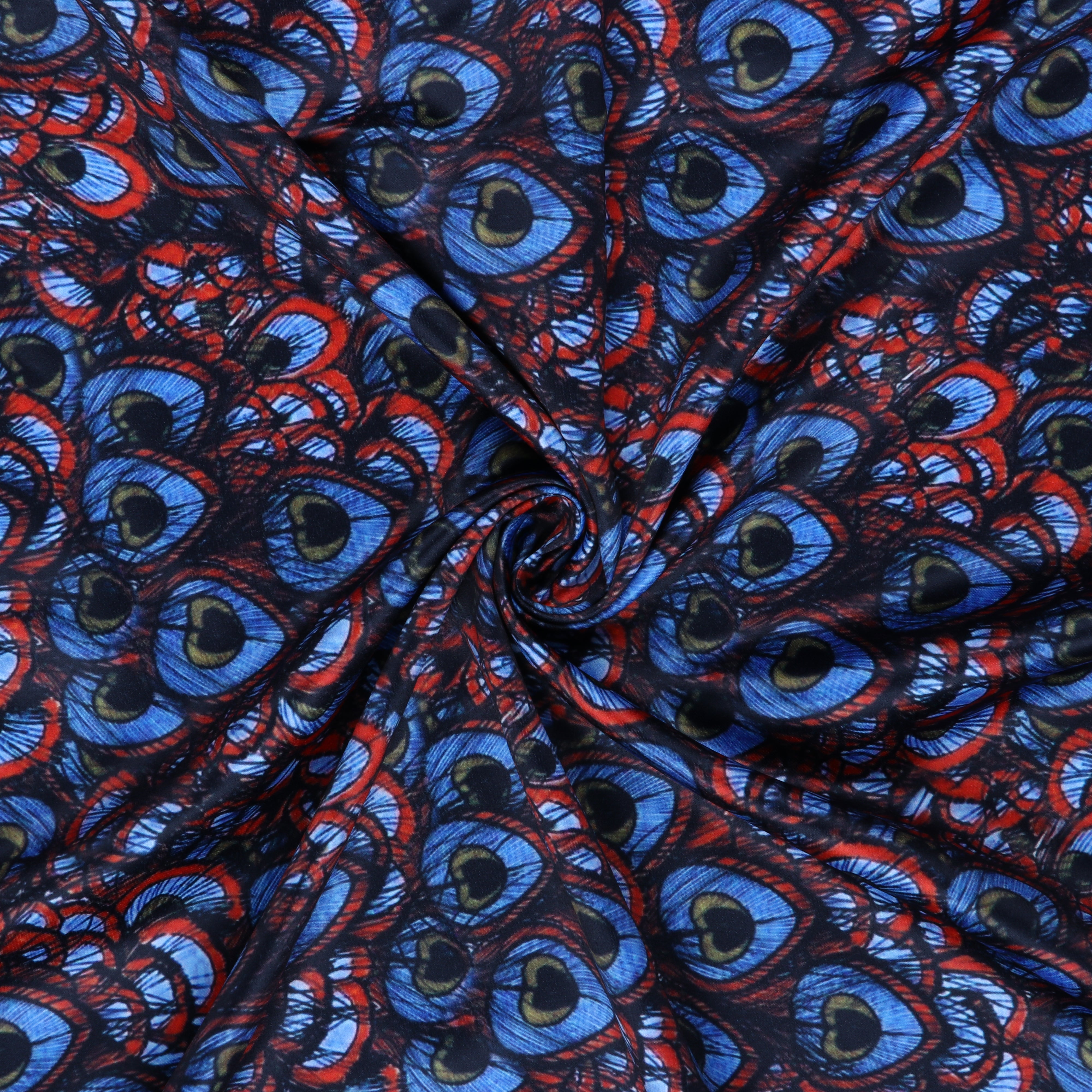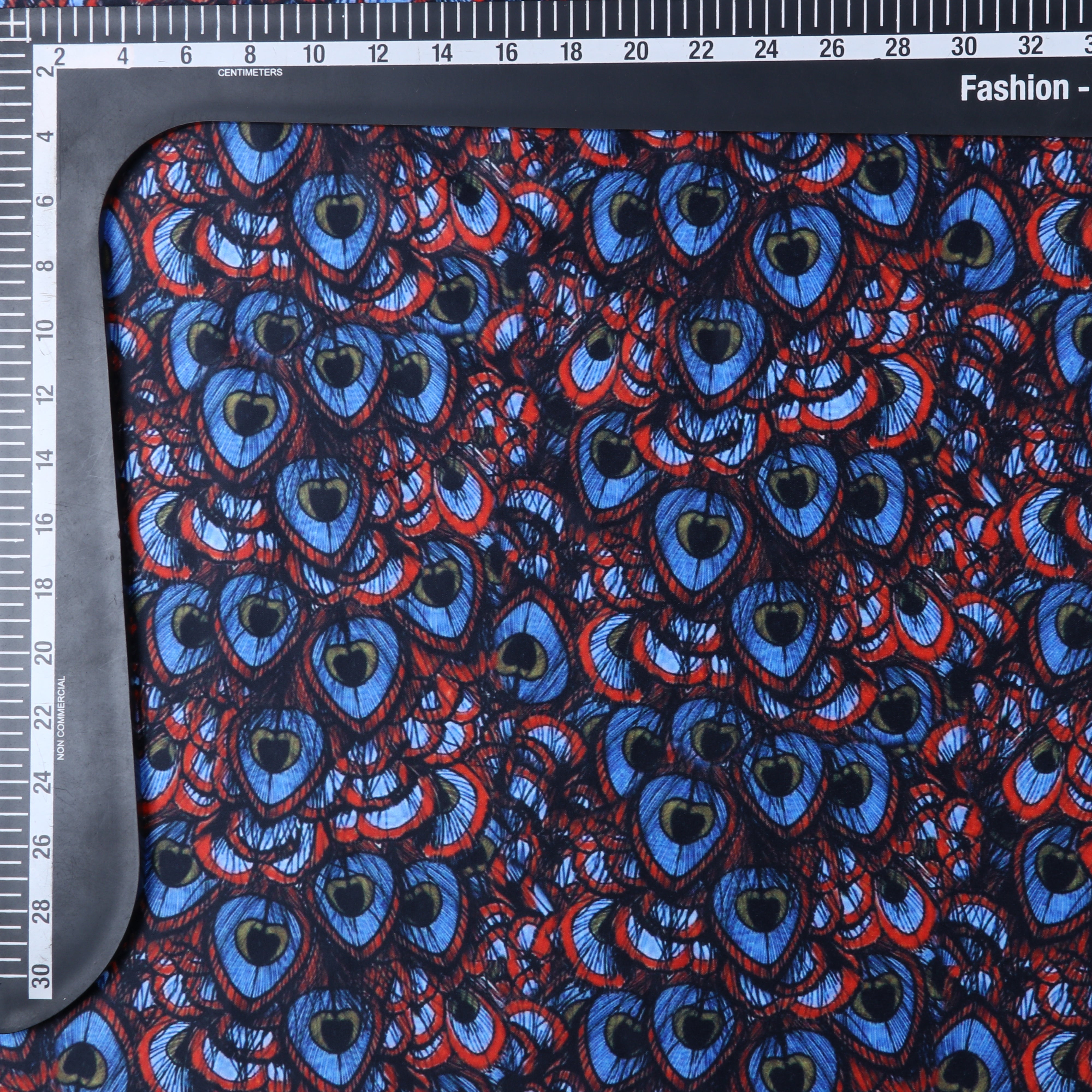 Red And Blue Morpich Pattern Digital Print Silk Satin Fabric
