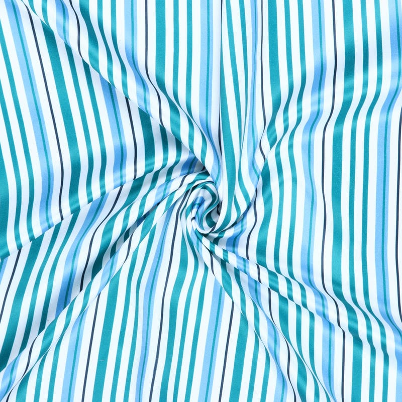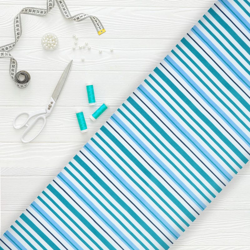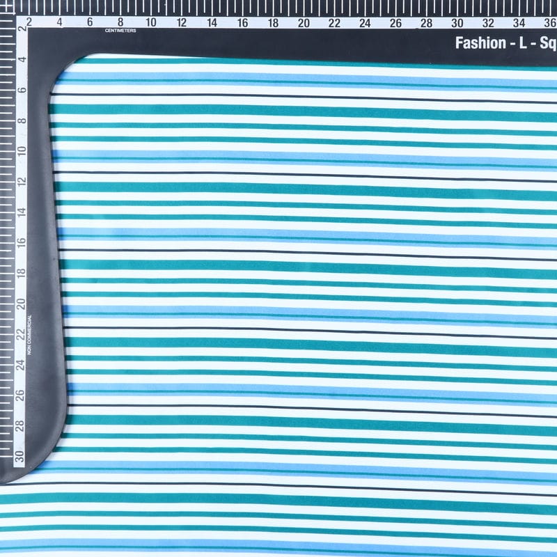 Sky Blue And Green Stripes Pattern Digital Print Silk Satin Fabric