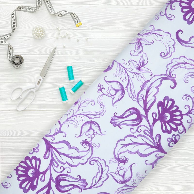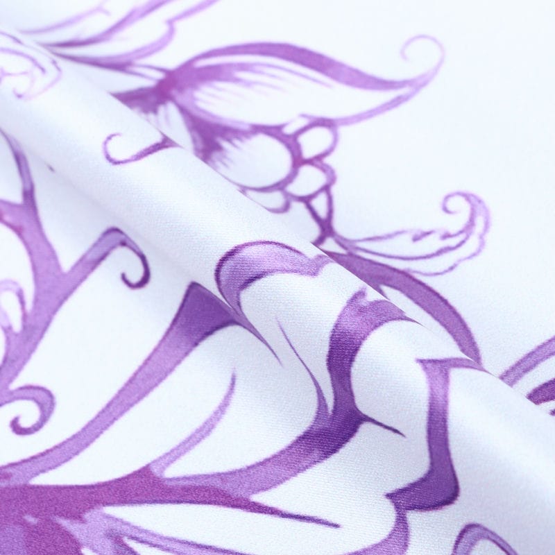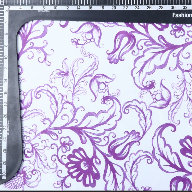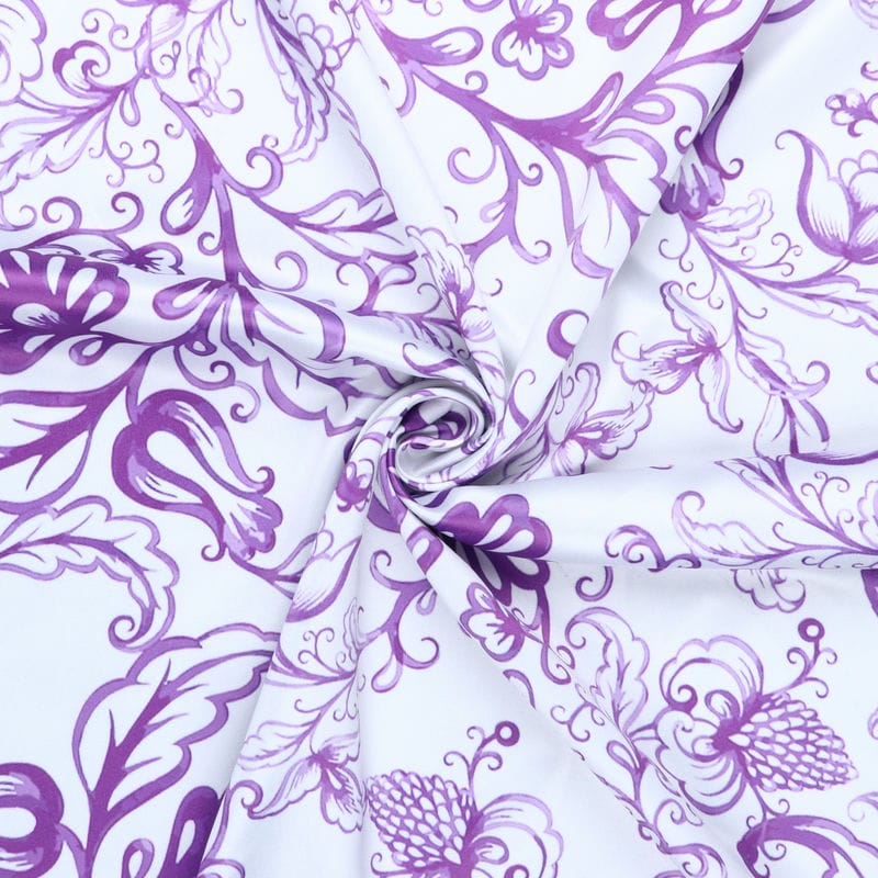 White And Purple Floral Pattern Digital Print Silk Satin Fabric