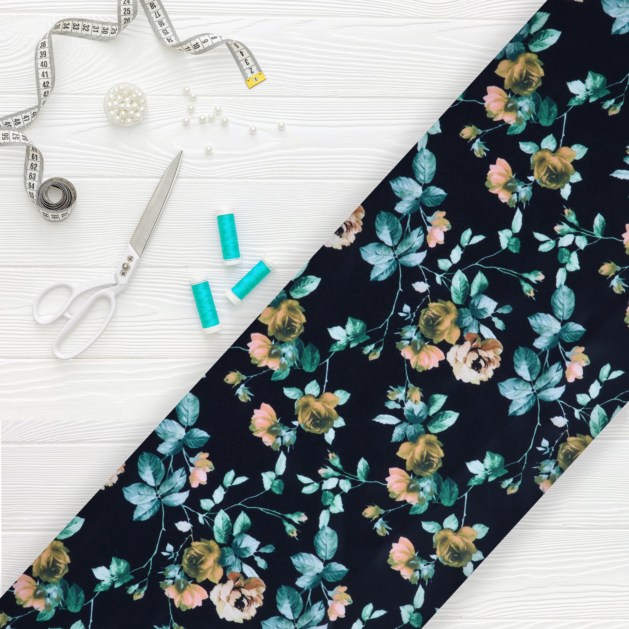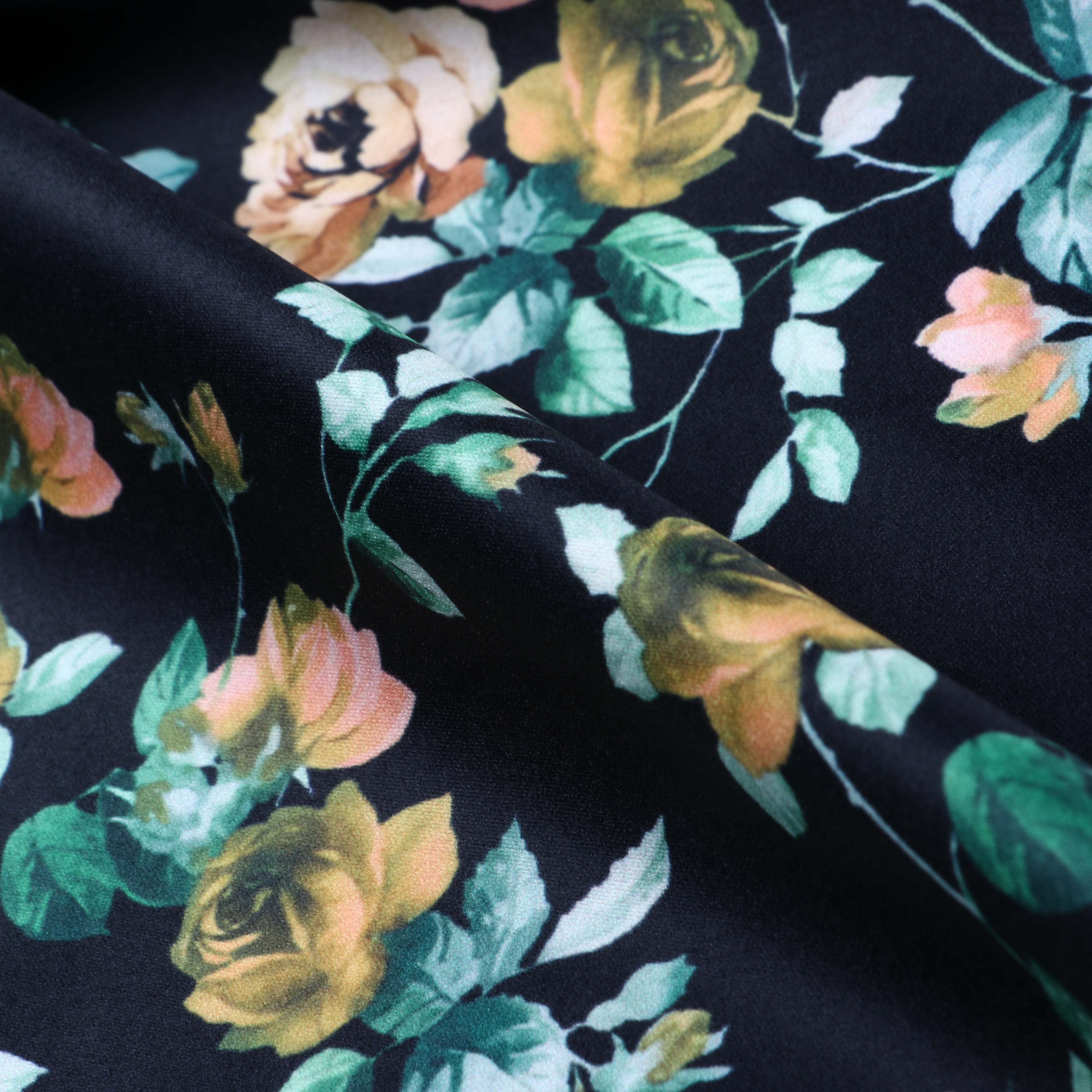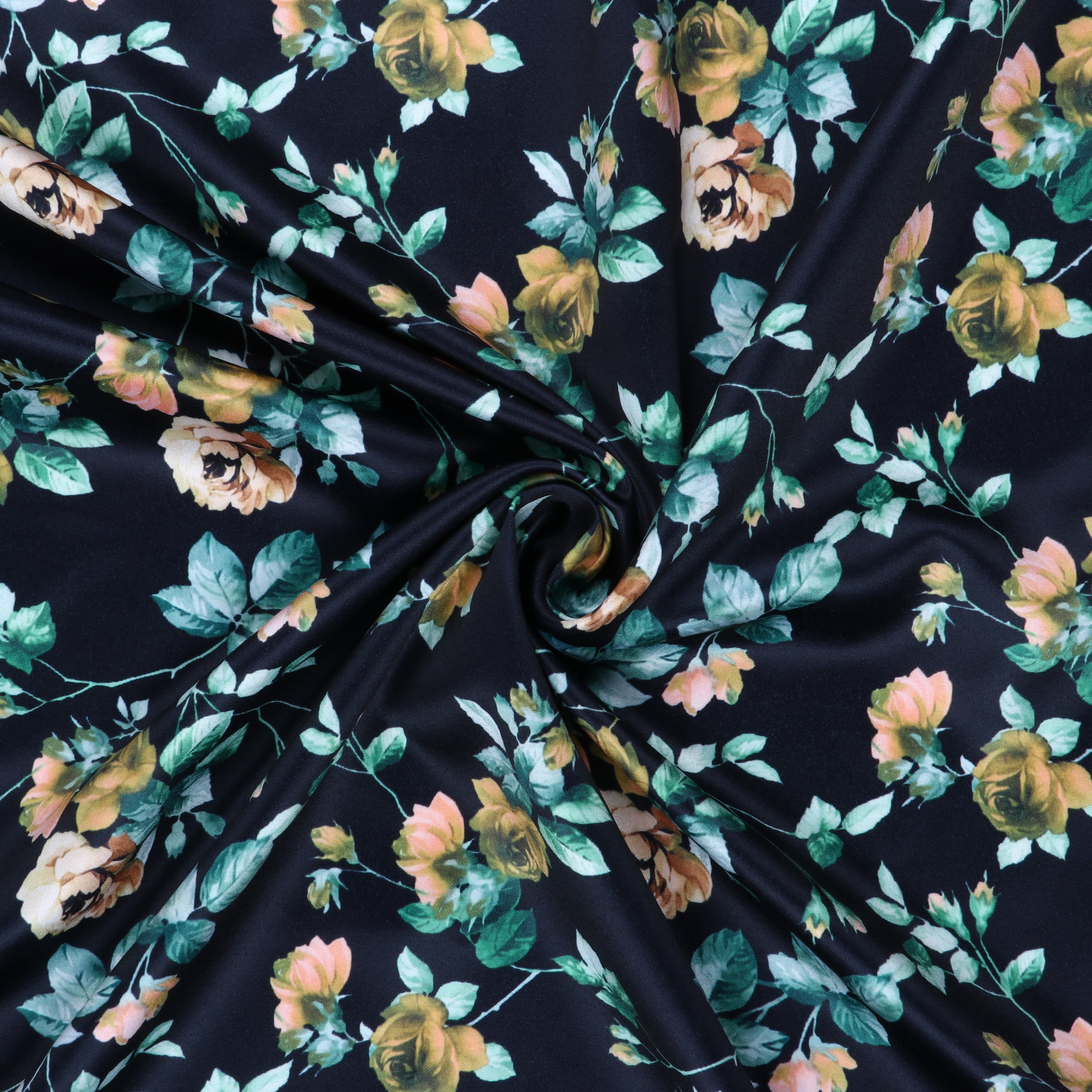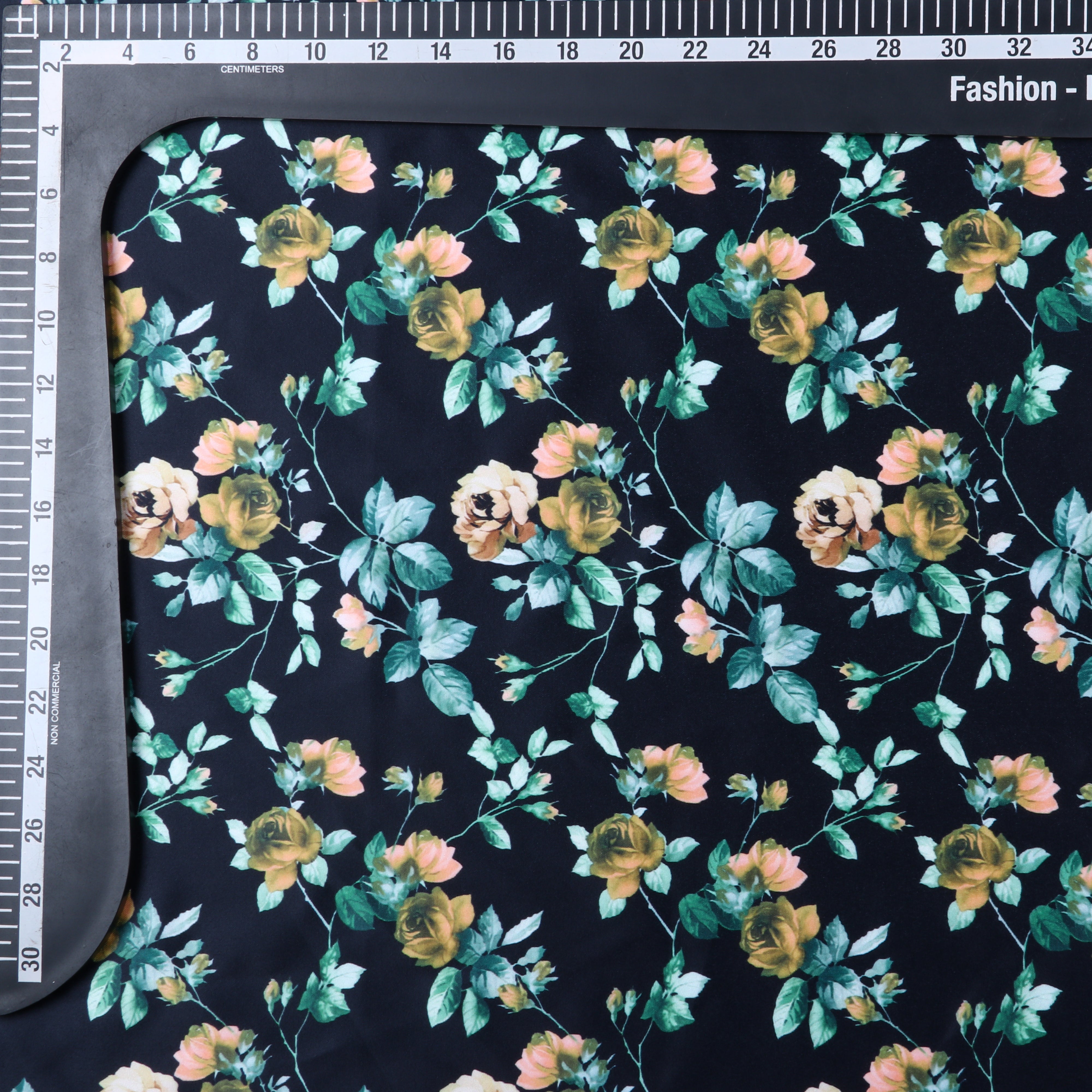 Yellow And Black Floral Pattern Digital Print Silk Satin Fabric