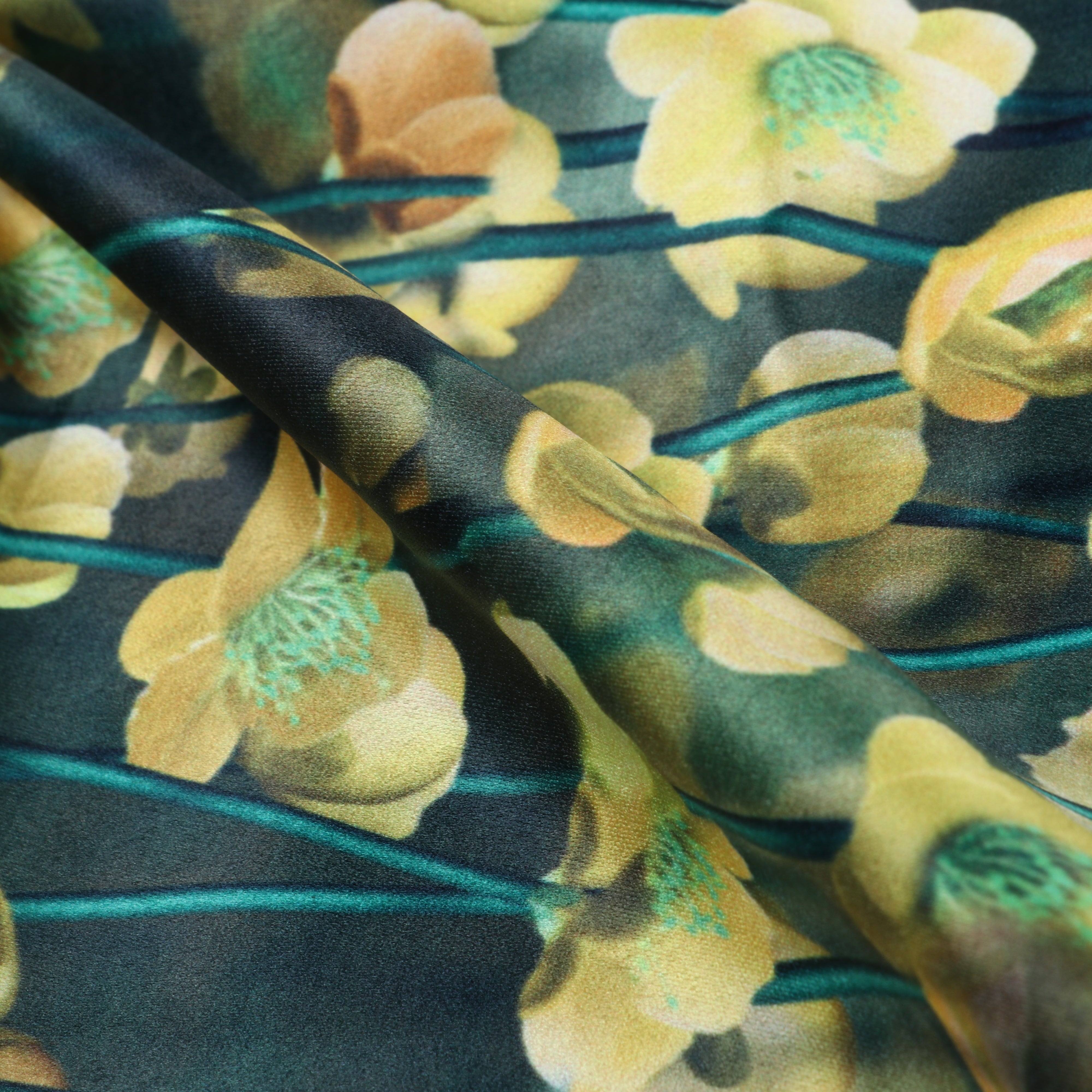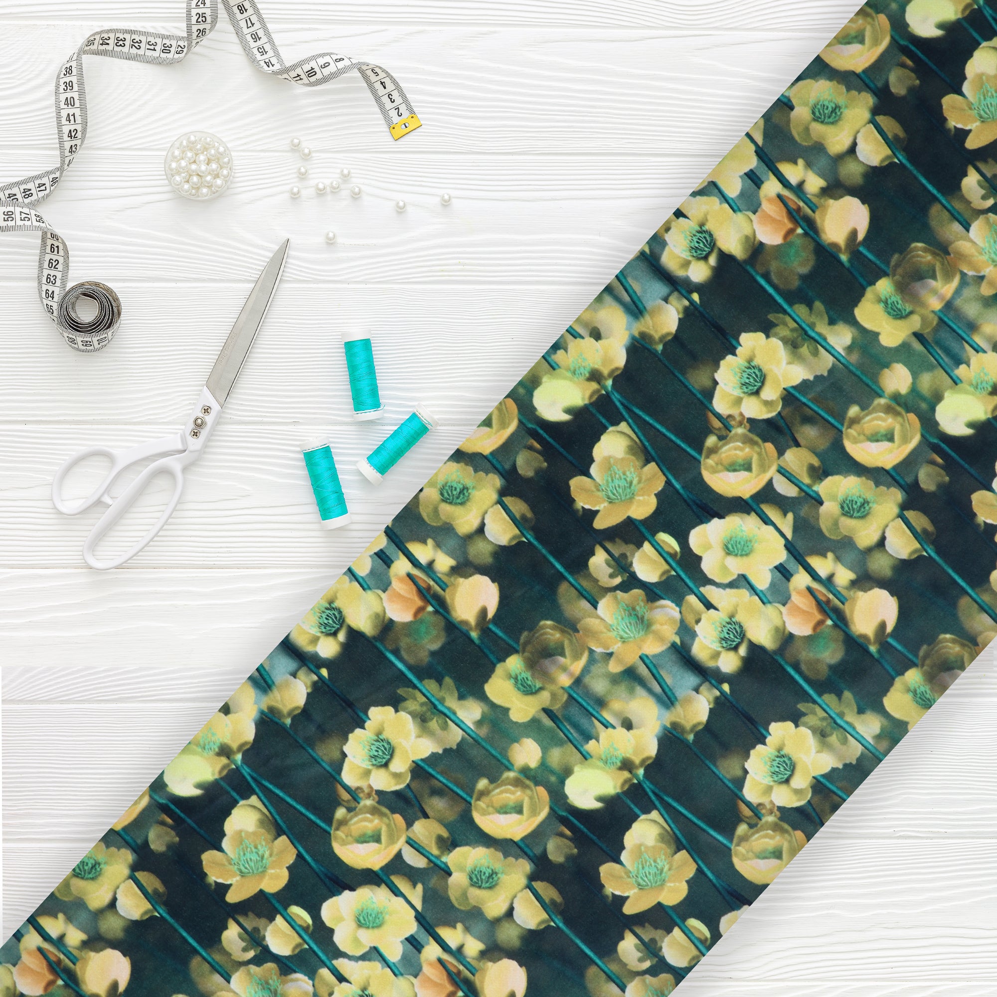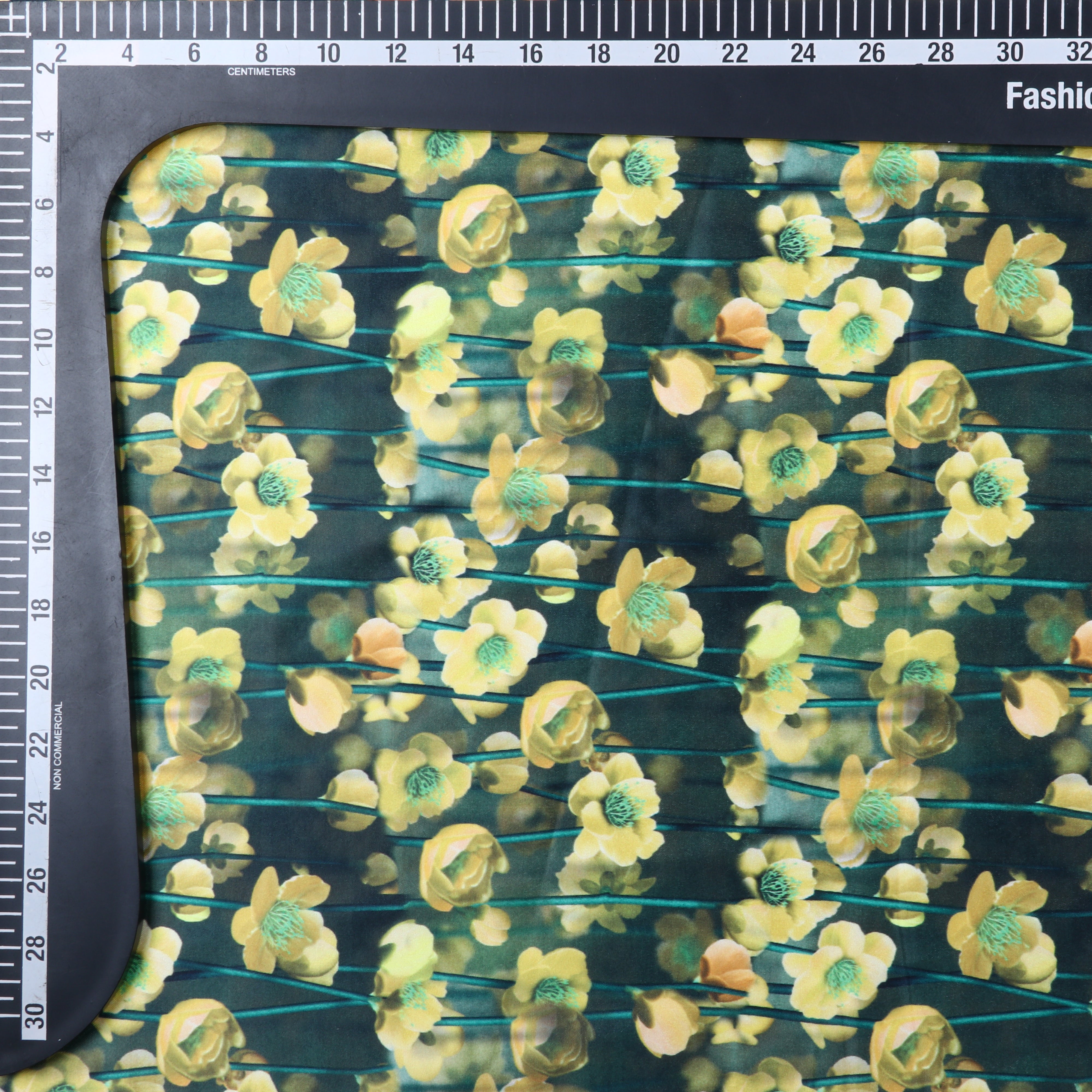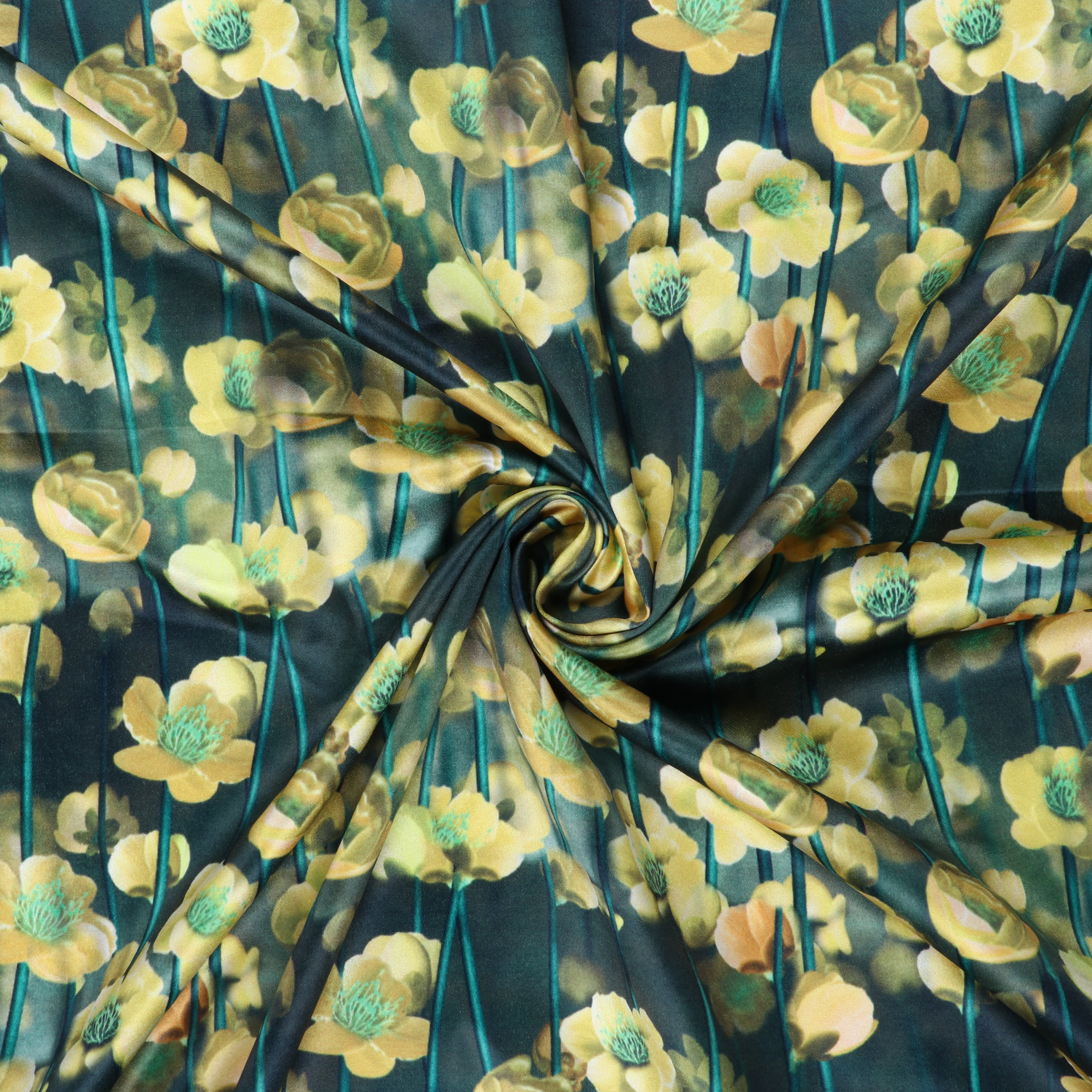 Yellow And Dark Grey Floral Pattern Digital Print Silk Satin Fabric