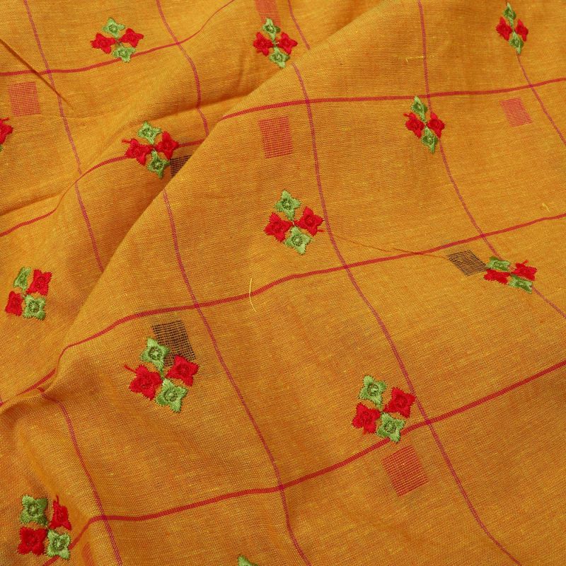Yellow And Red Checks Pattern Dyed Embroidery Cotton Fabric