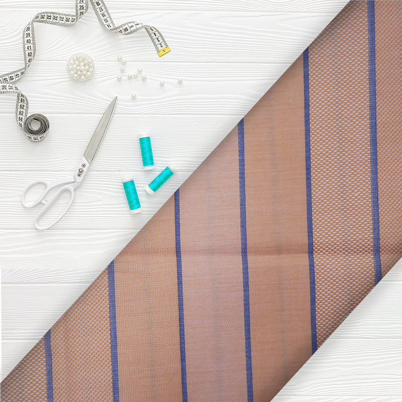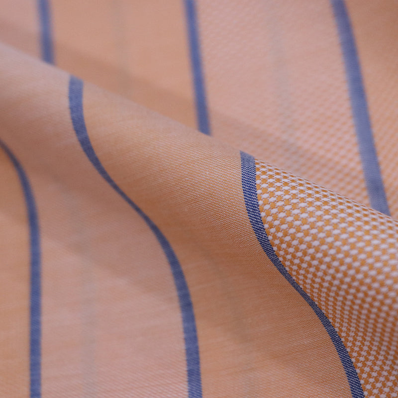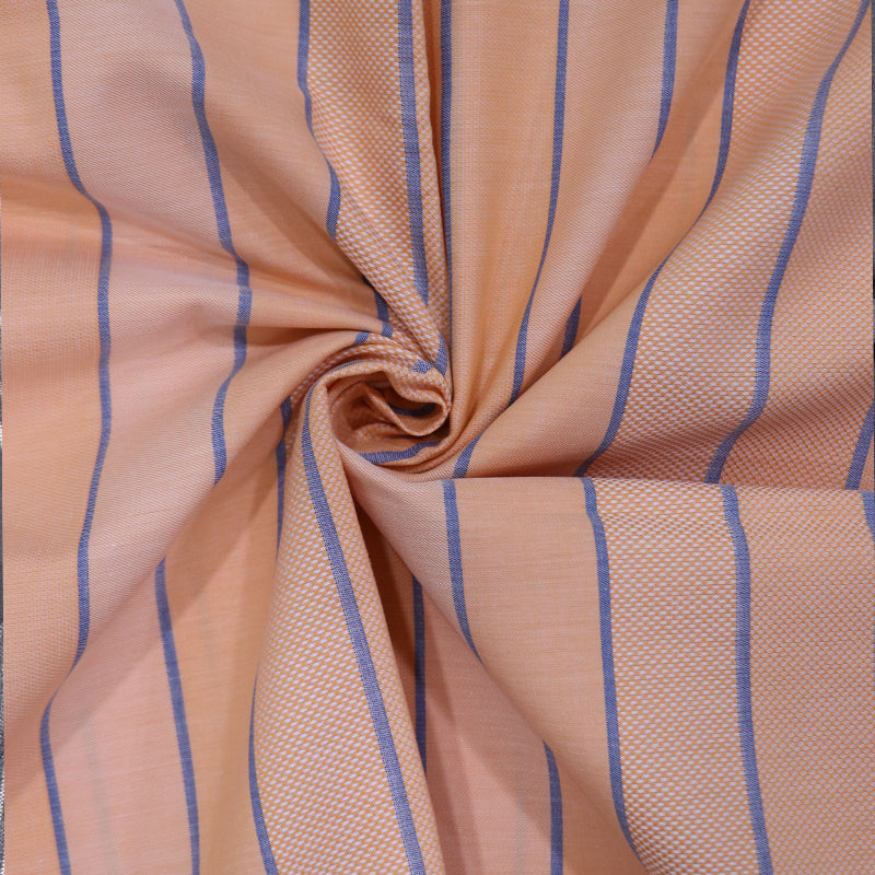 Light Orange And Blue Stripe Pattern Yarn Dyed Cotton Fabric
