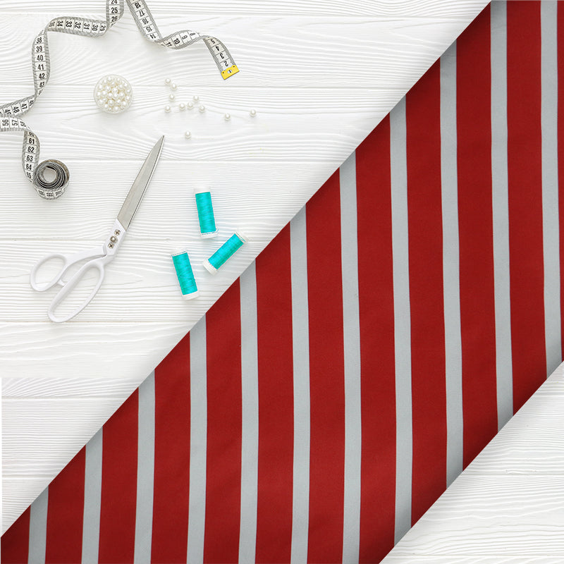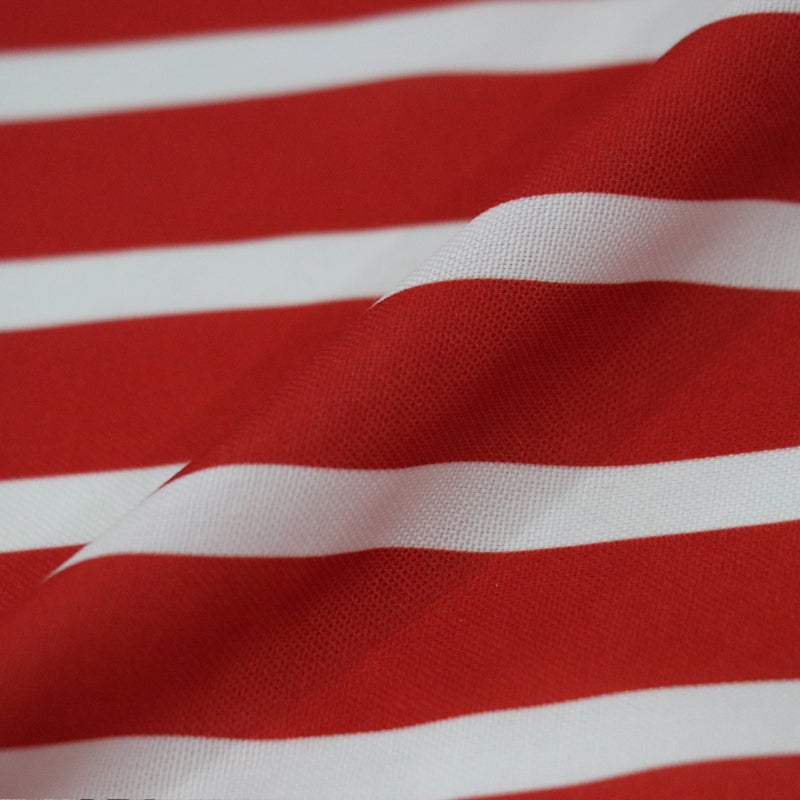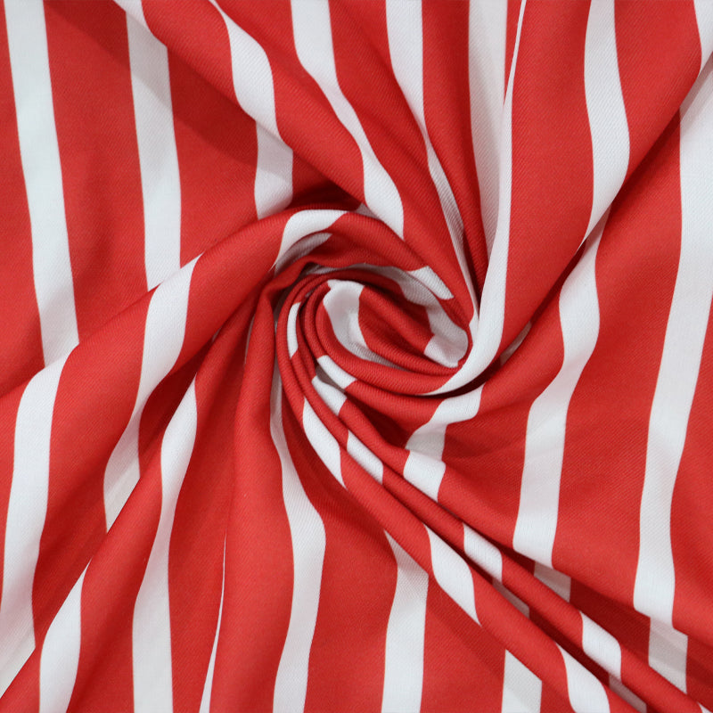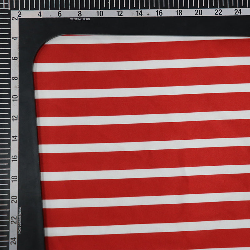 Red And White Stripe Pattern Digital Print Rayon Fabric.