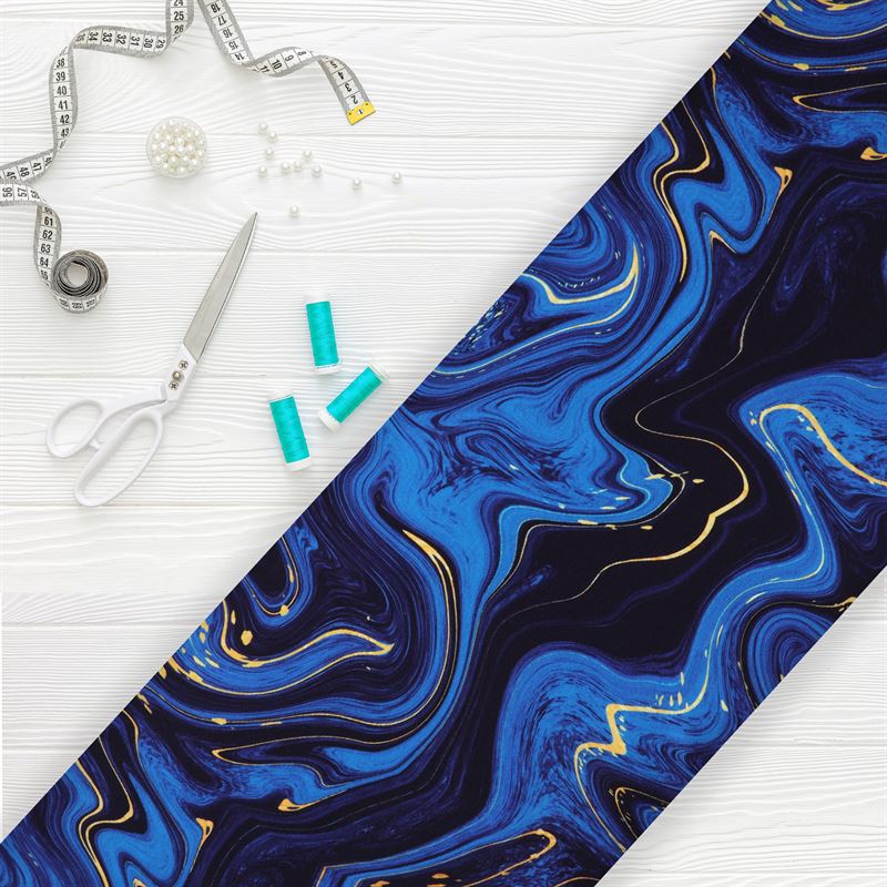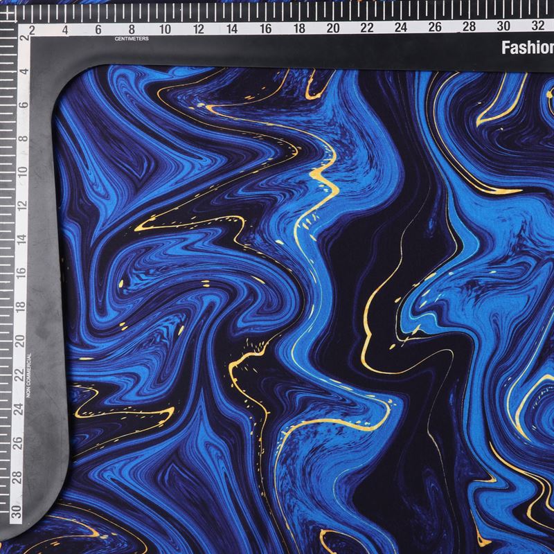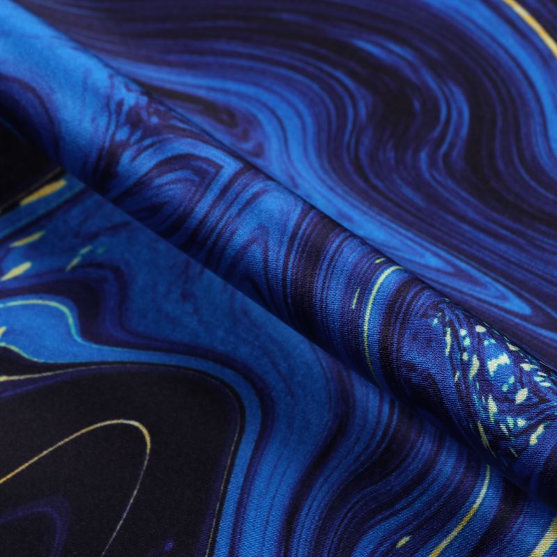 Blue And Black Tie & Dye Pattern Digital Print Japan Satin Fabric