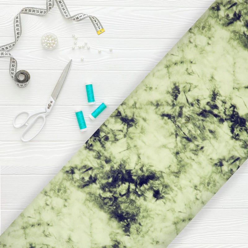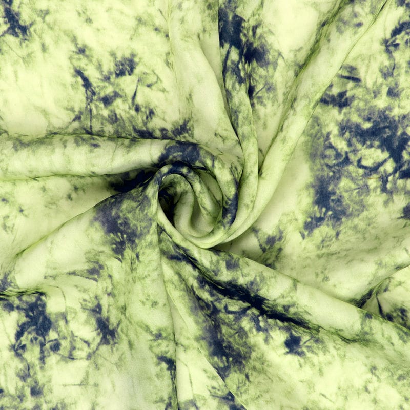 Olive Green And Black Tie & Dye Pattern Digital Print Georgette Satin Fabric
