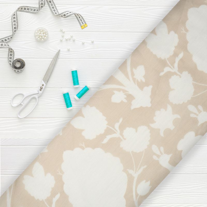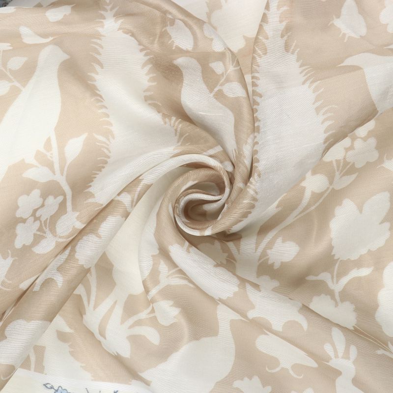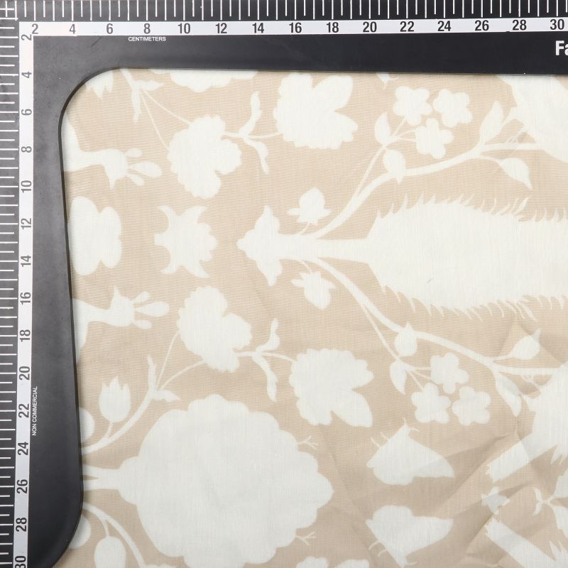 Beige And White Traditional Pattern Digital Print Chanderi Fabric