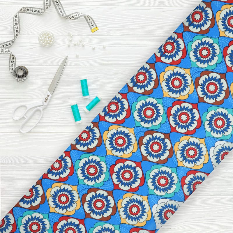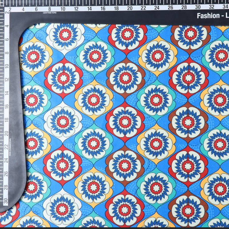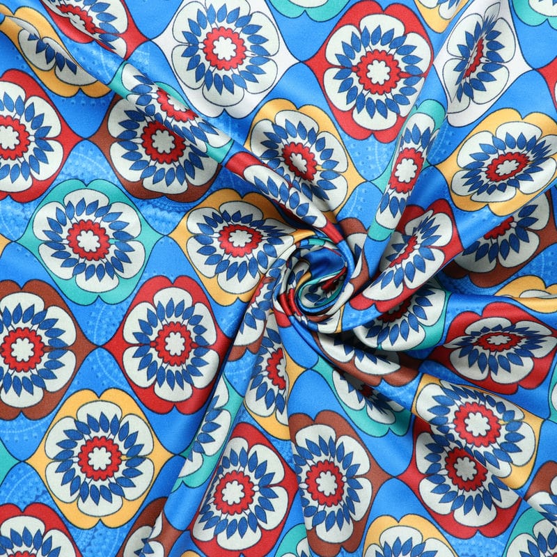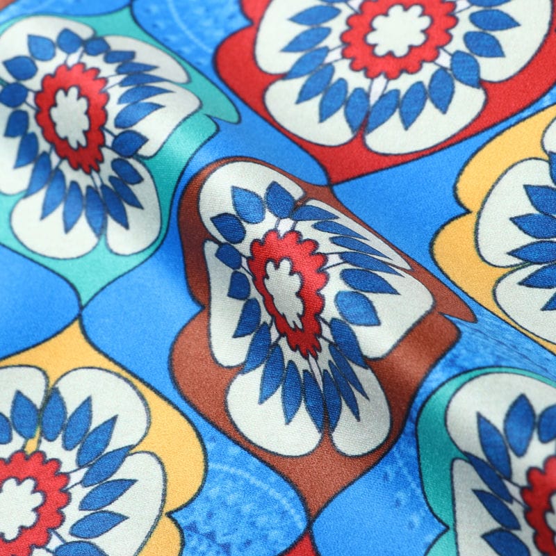 Blue And White Traditional Pattern Digital Print Silk Satin Fabric