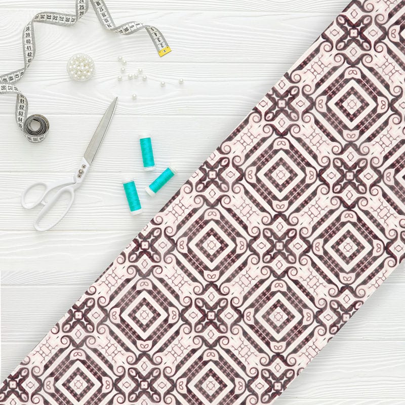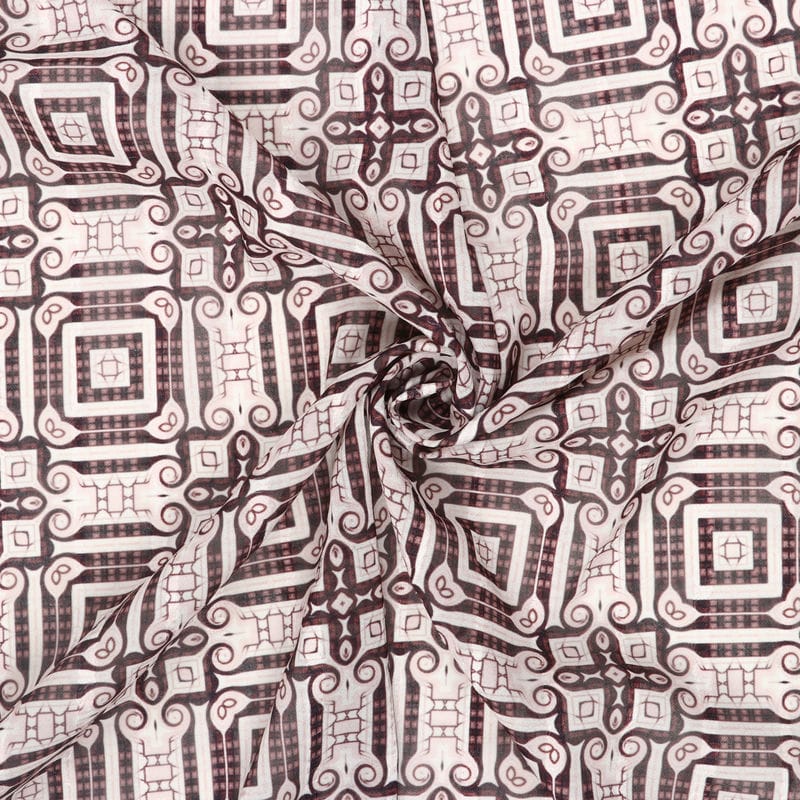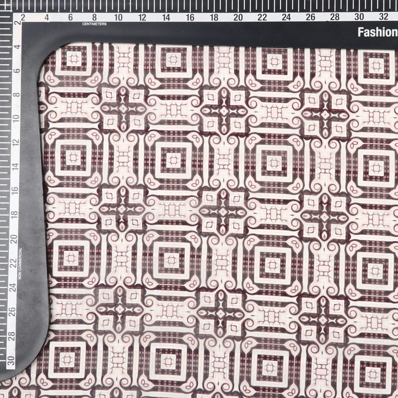 Brown And White Traditional Pattern Digital Print Stripe Jacquard Georgette Fabric