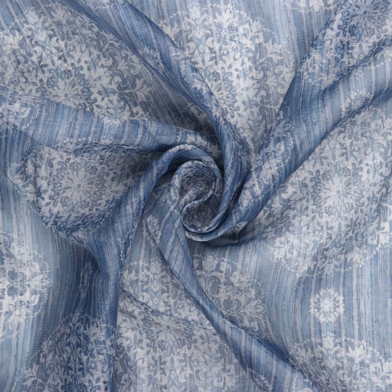 Dusty Blue And White Traditional Pattern Digital Print Chanderi Fabric
