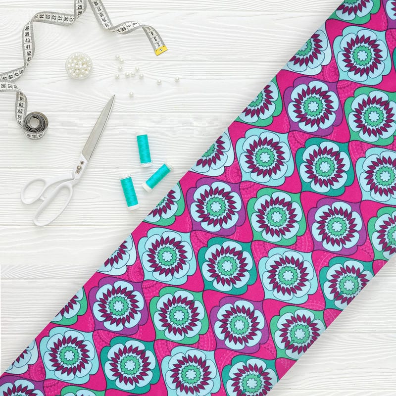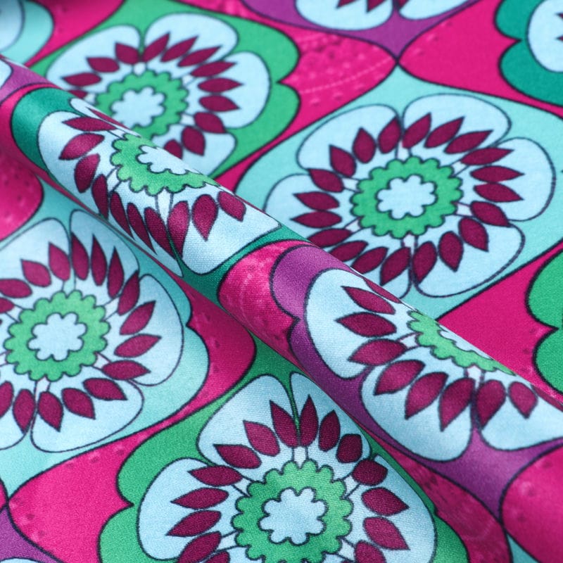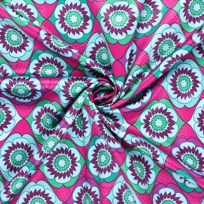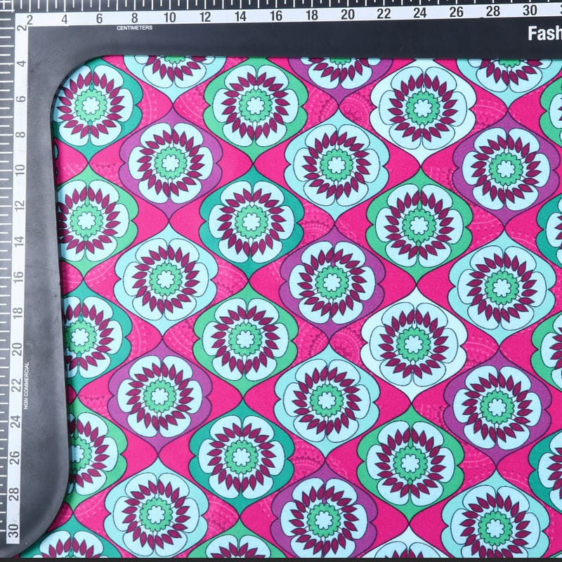 Pink And Turquoise Traditional Pattern Digital Print Silk Satin Fabric