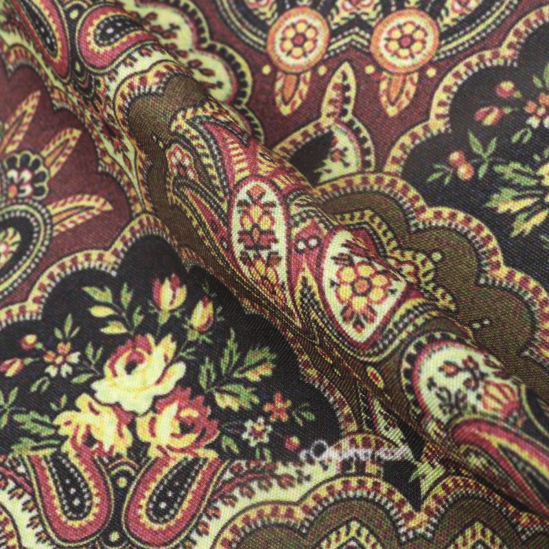 Top QualityMoss Green And Yellow Trellis Pattern Digital Print Rayon Fabric