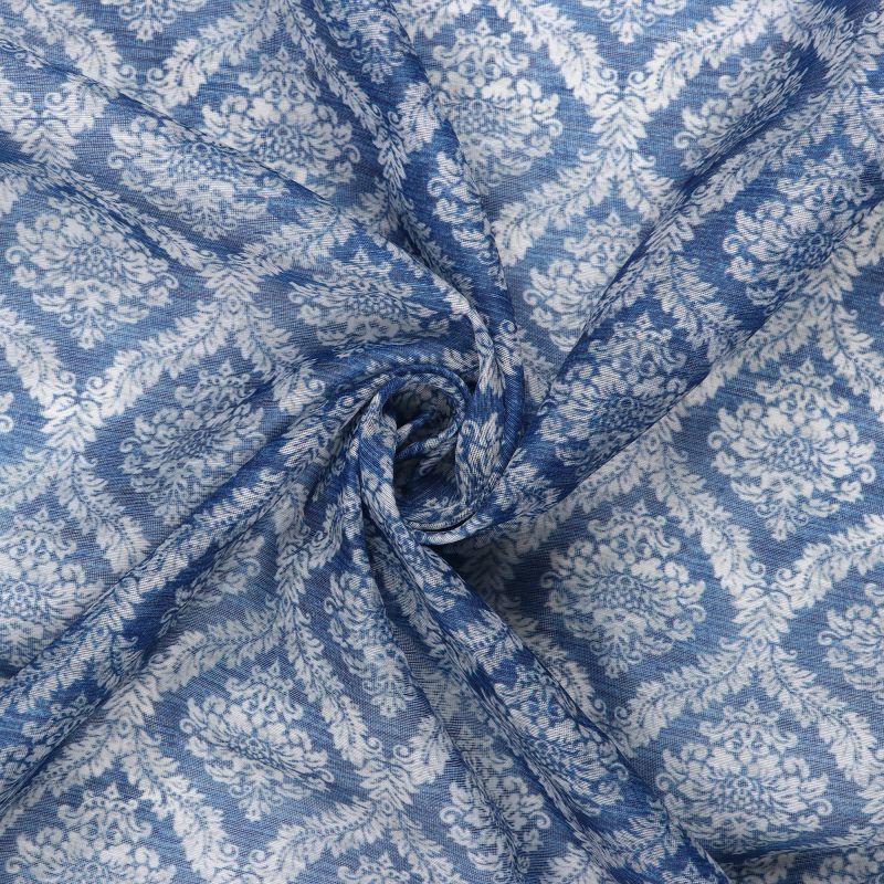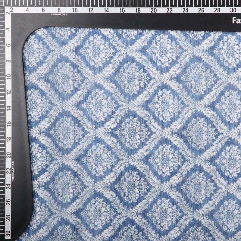 White And Blue Trellis Pattern Digital Print Chanderi Fabric