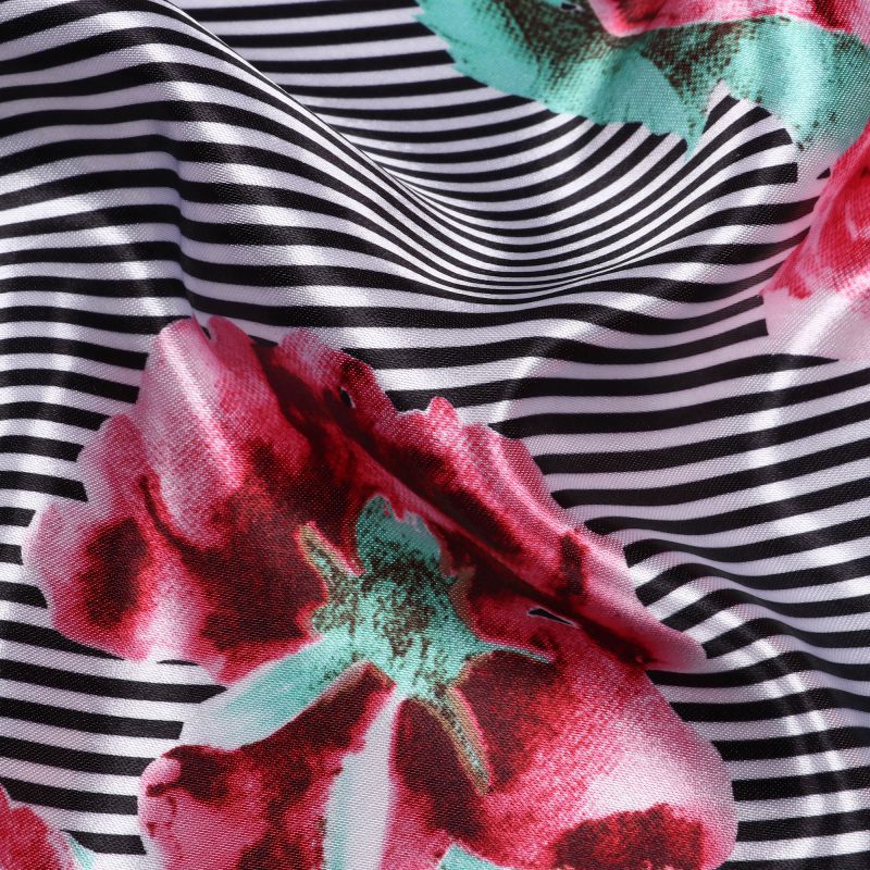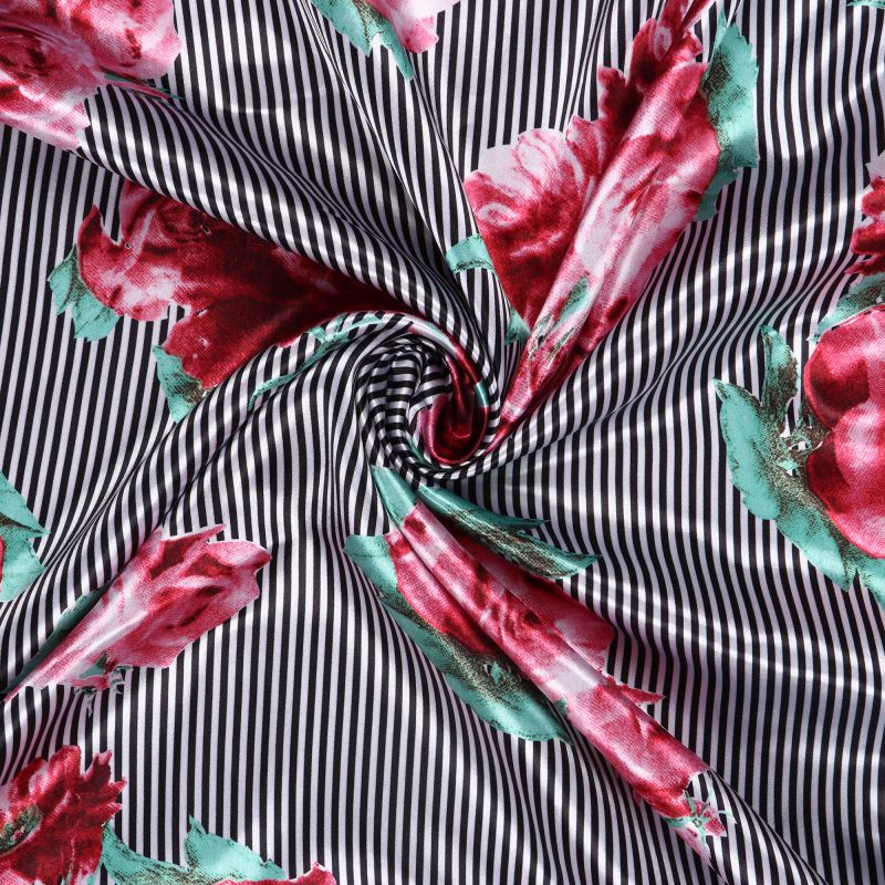 Black And Deep Pink Floral Pattern Digital Print Ultra Satin Fabric