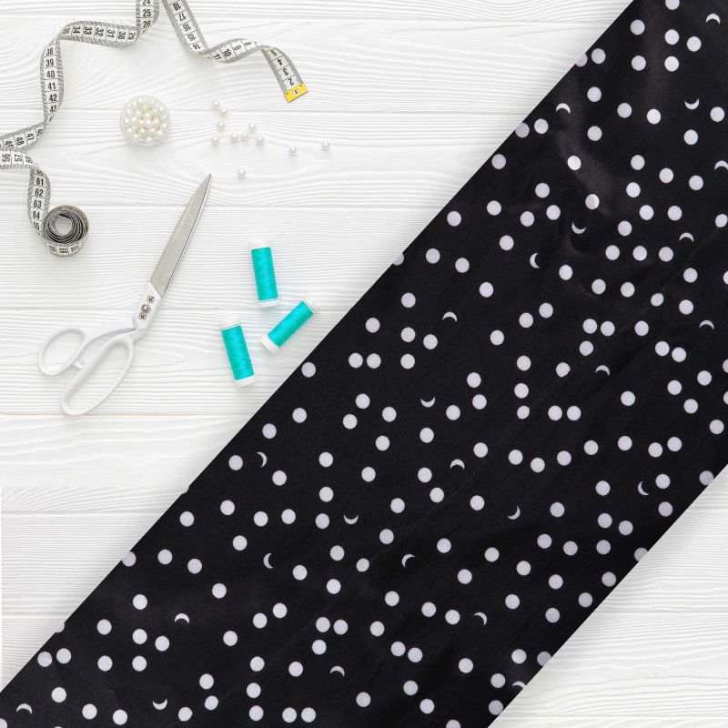 Black And White Polka Dots Pattern Digital Print Ultra Satin Fabric